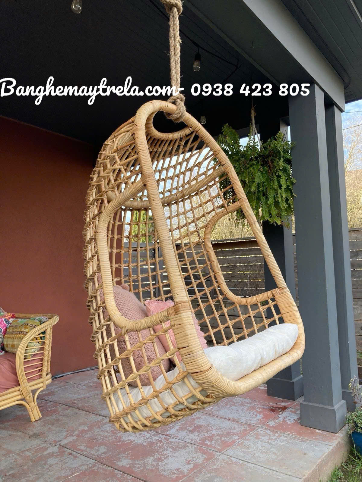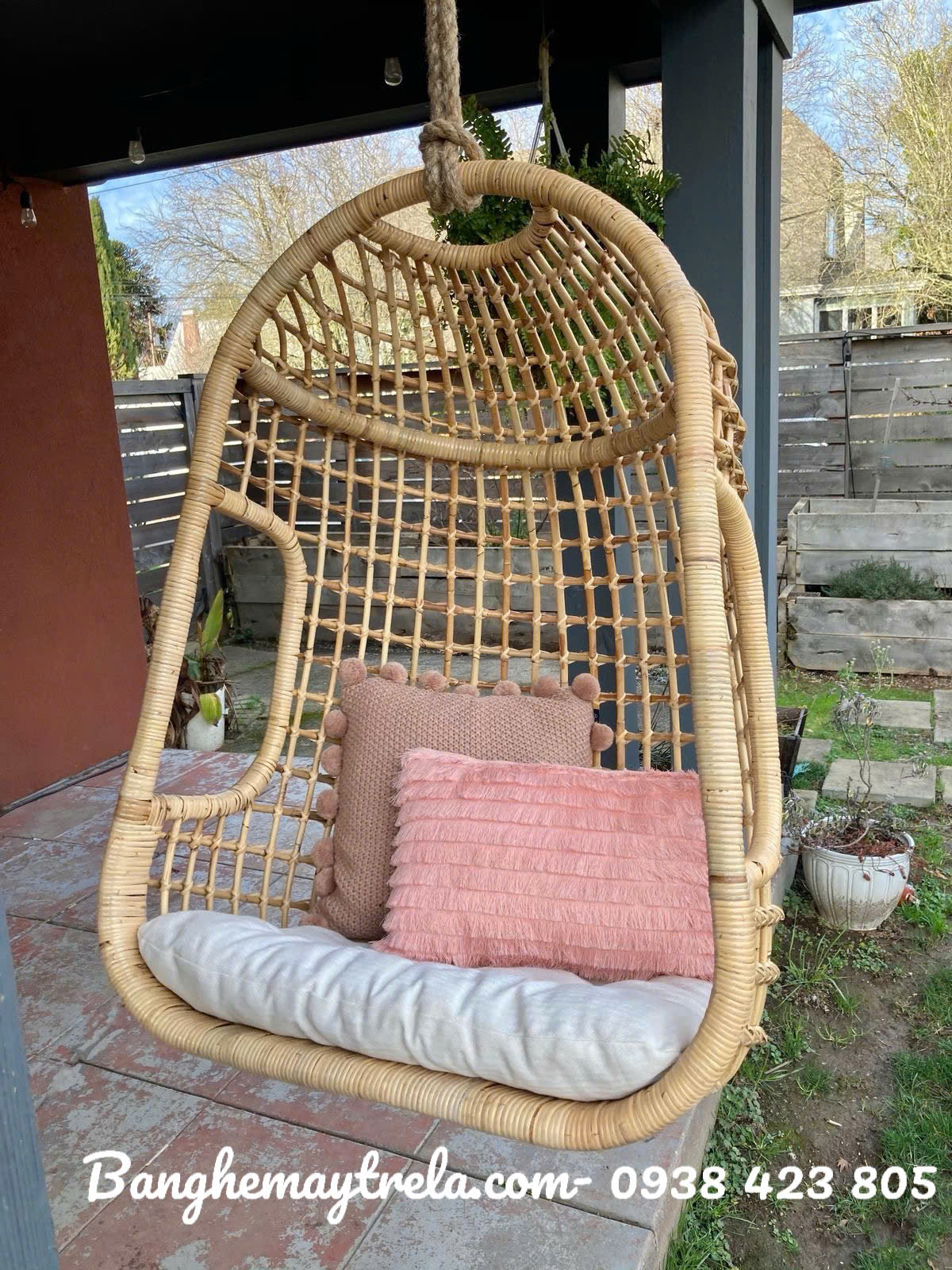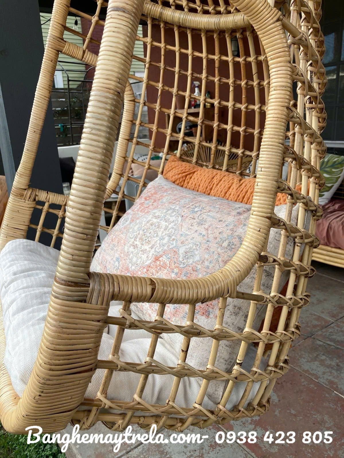Xích đu mây đan caro
