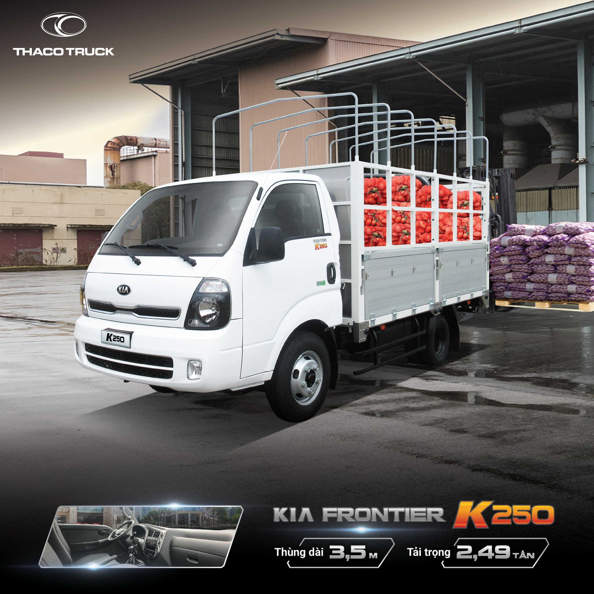 KIA K250: tải trọng 2,49 tấn, thùng dài 3,5m.