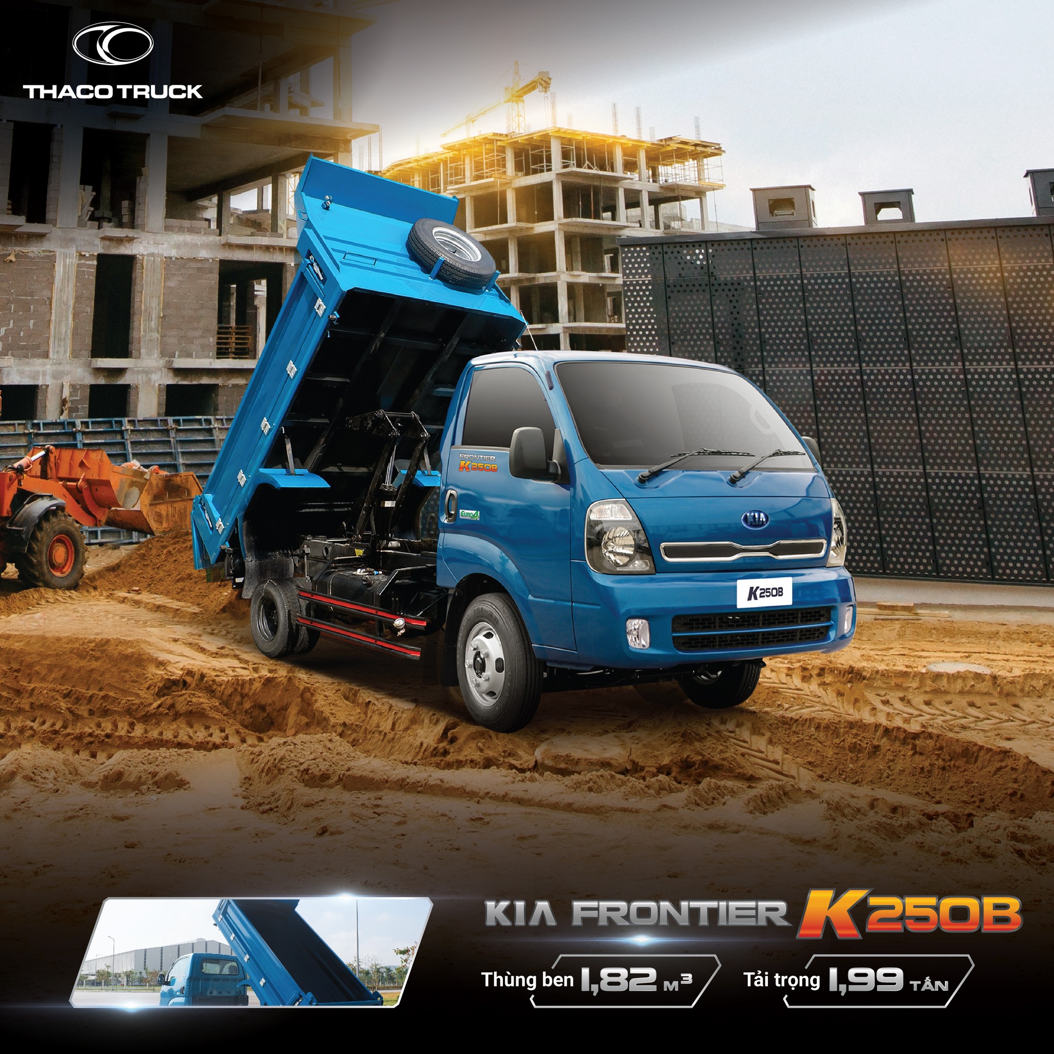 KIA K250B: tải trọng 1,99 tấn, thùng ben 1,82m3.