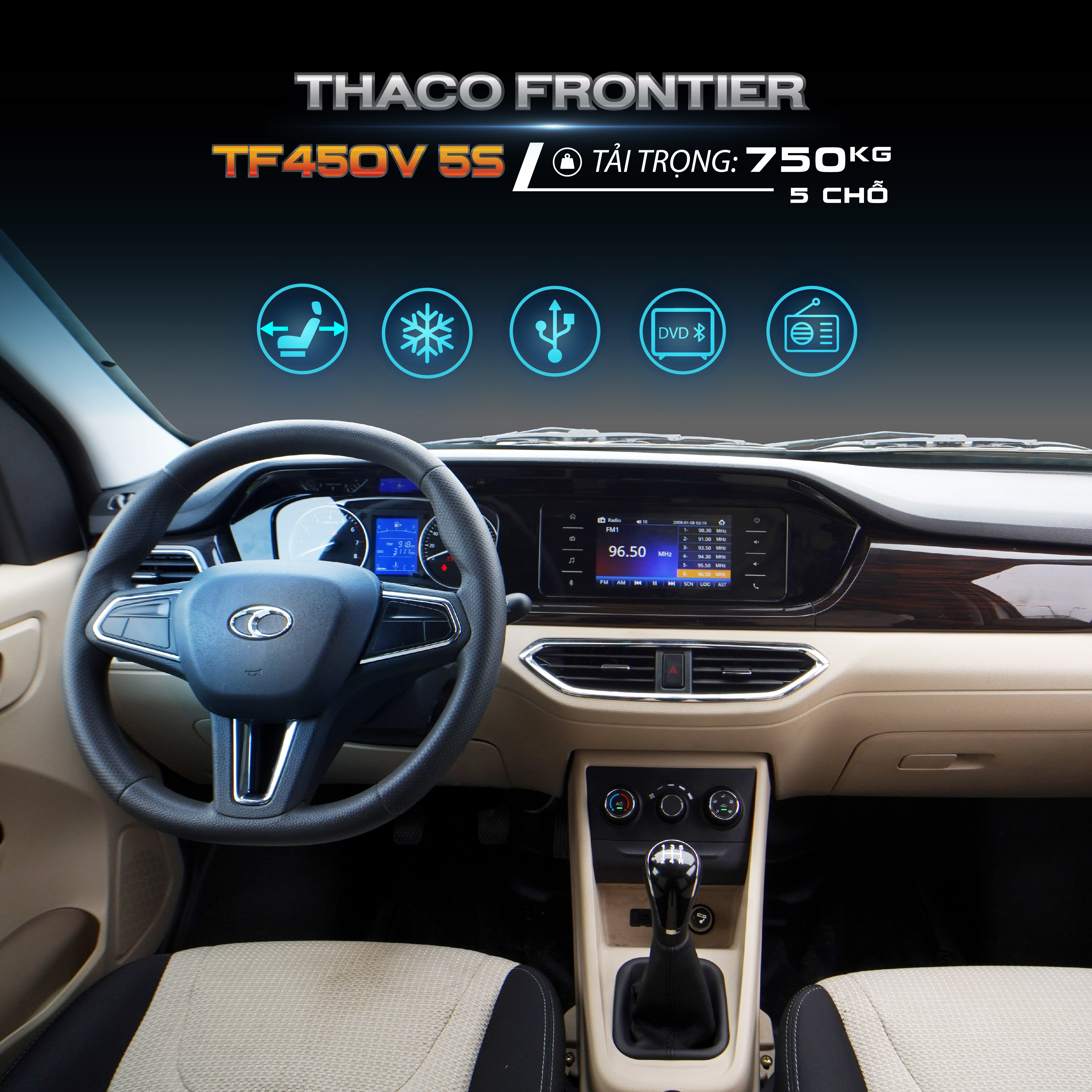 Thaco Frontier TF450 5S - sự kết hợp hoàn hảo cho nhiều mục đích sử dụng cùng lúc . Được thiết kế 5 ghế ngồi cho 5 người, khoang chở hàng với sức chứa lên đến 750kg, giúp tận dụng tối đa công dụng so với một chiếc ô tô thông thường.