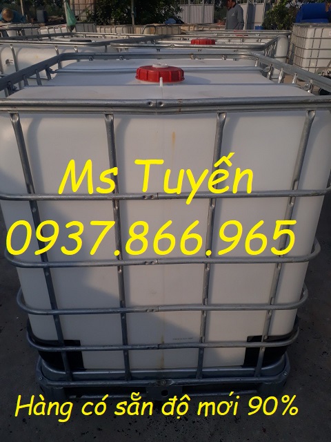 Thùng nhựa IBC 1000 lít cũ có kích thước nắp lớn dễ dàng rót hóa chất hay chất lỏng, thực phẩm.