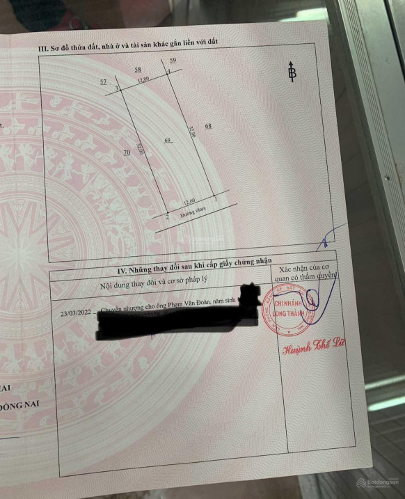 Đất vuông, mặt tiền ngang 12m, hướng Đông Nam, sổ hồng đẹp.