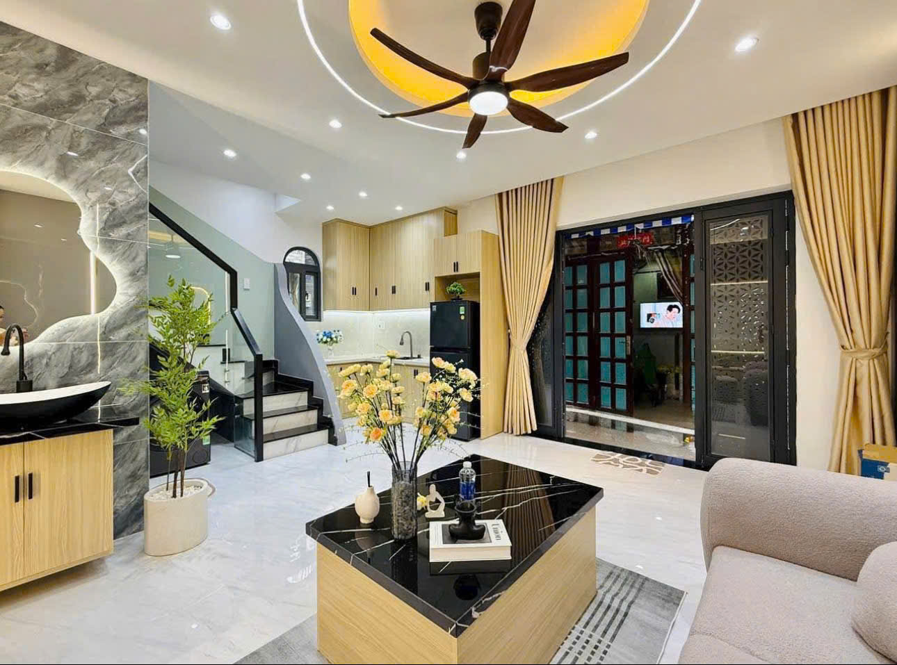 🛠 Nội thất: Đã trang bị nội thất cơ bản: tủ bếp, sofa, giường tủ, rèm.