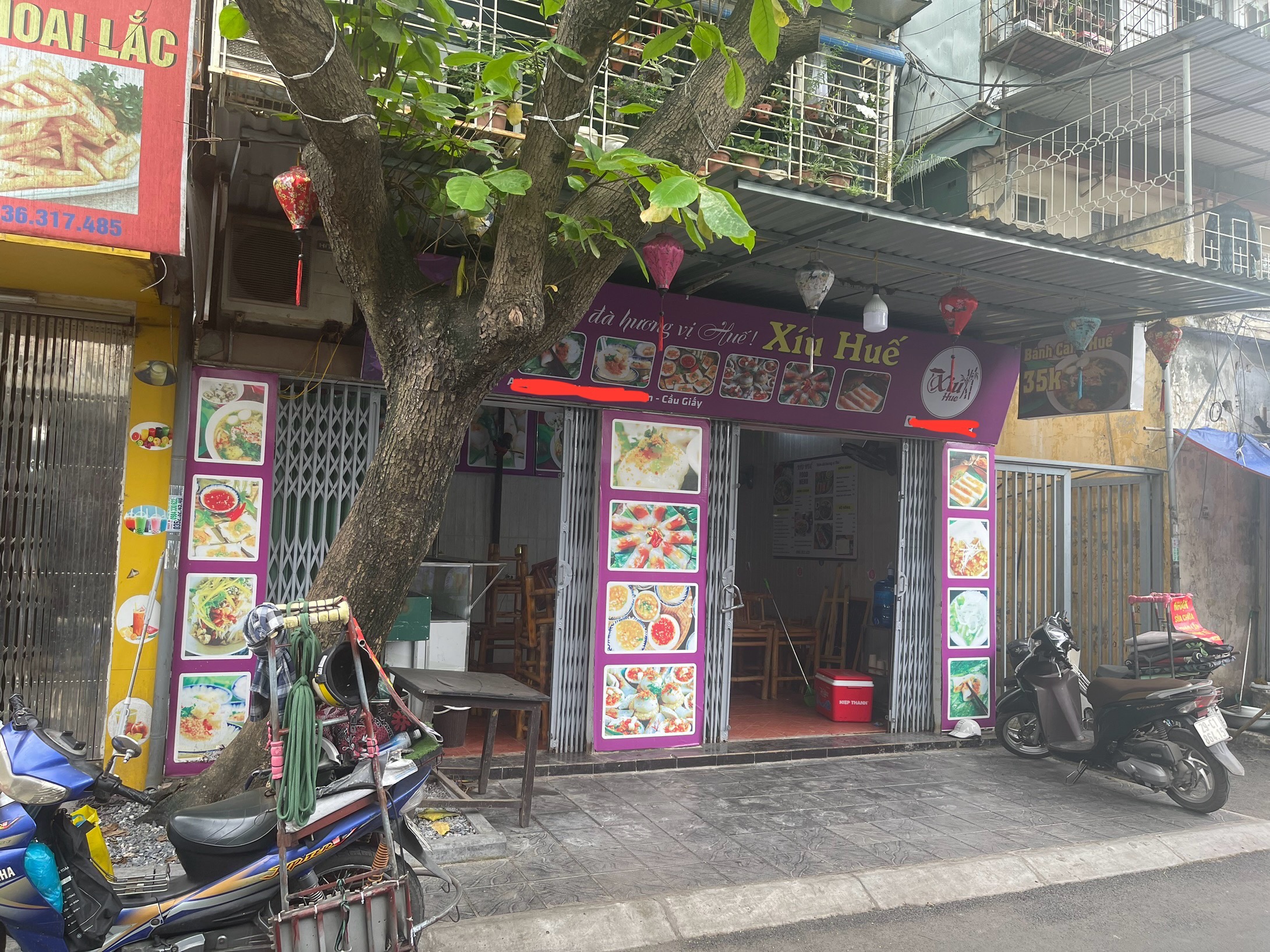 - Cửa hàng ở mặt đường và gần cả ngã ba đường phố, có vỉa hè rộng để xe thoải mái