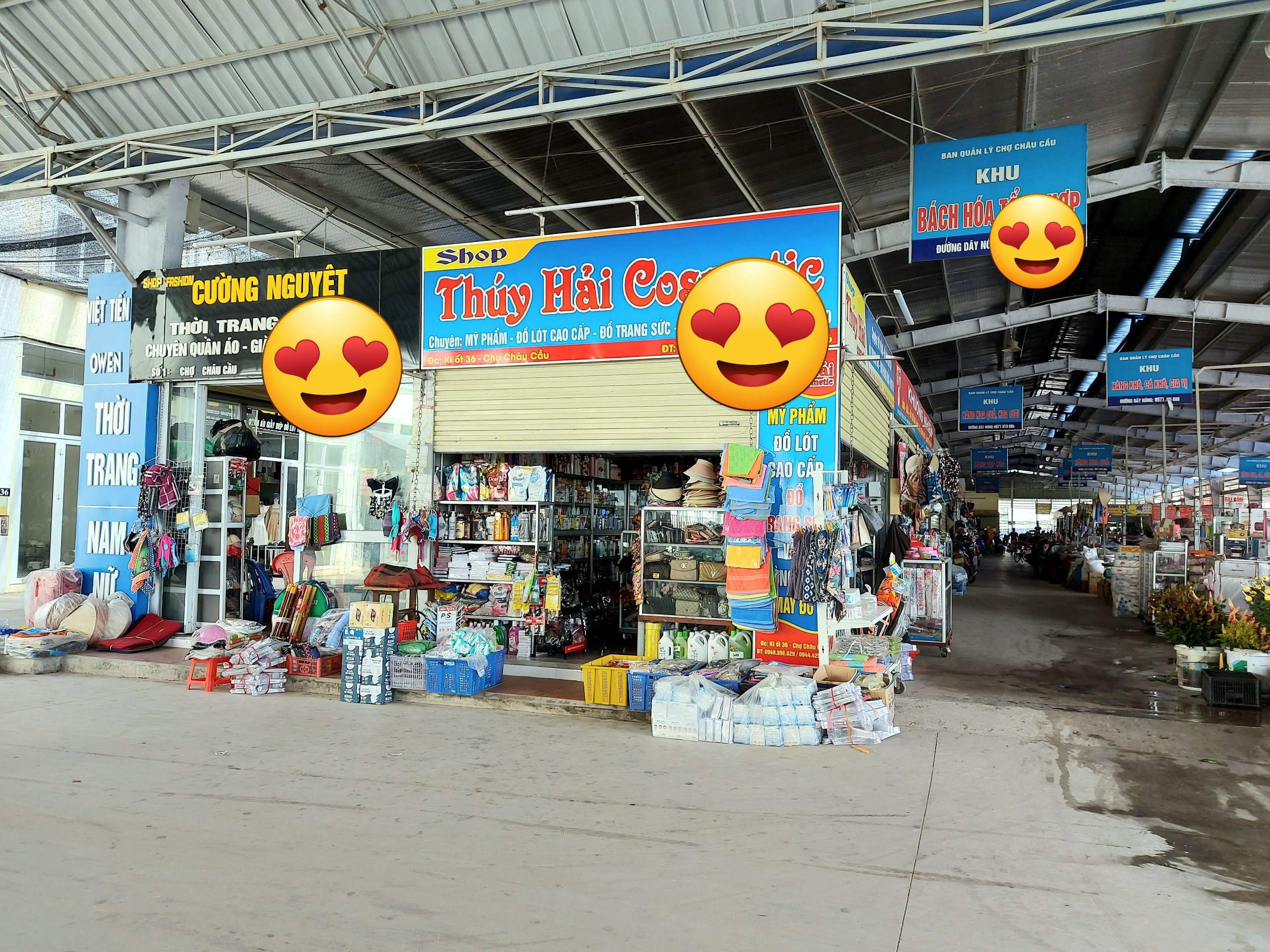 Khu chợ ngoài trời, quầy chợ và sạp hàng đã lấp đầy, tiểu thương buôn bán tấp nập. Pháp lý rõ ràng. Chợ có đến 6 cổng ra vào container đi đánh võng.