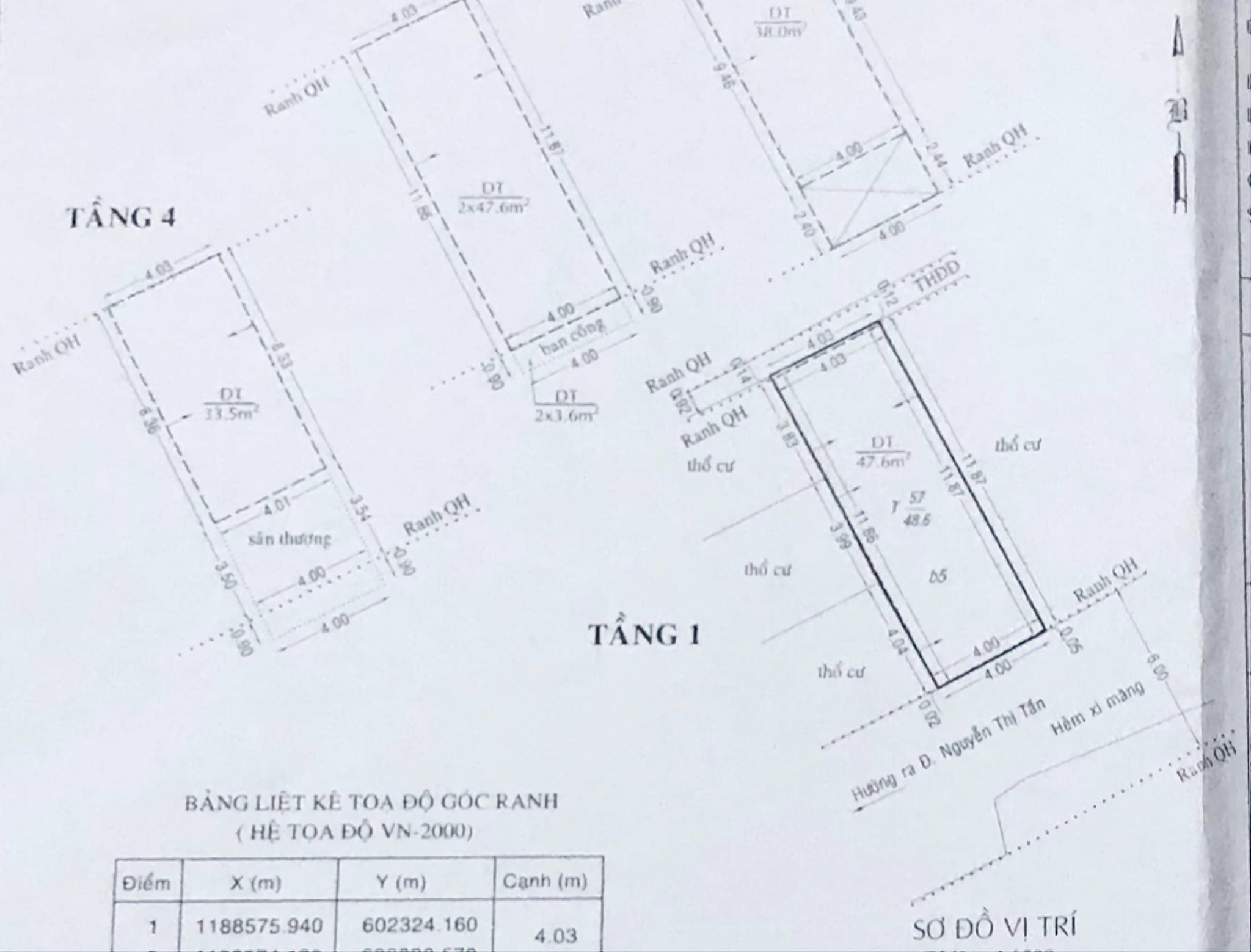 - Diện tích ĐẤT: 4m x 12m (công nhận 48m2 ĐẤT)