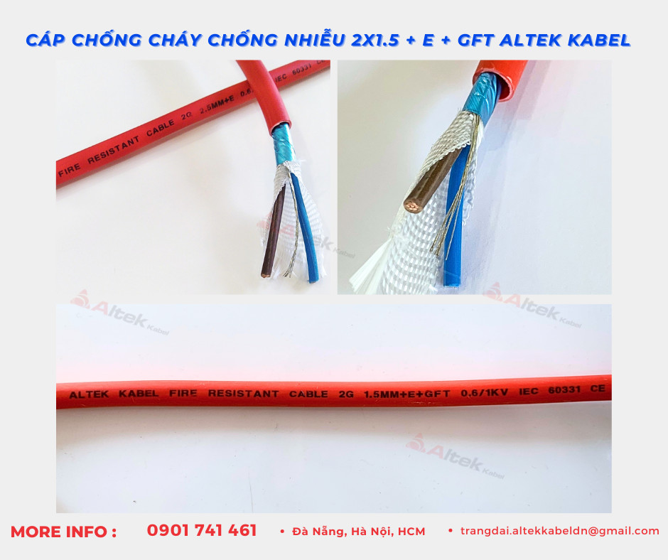 Cáp chống cháy chống nhiễu GFT 2x1.5 Altek Kabel chịu nhiệt độ cao