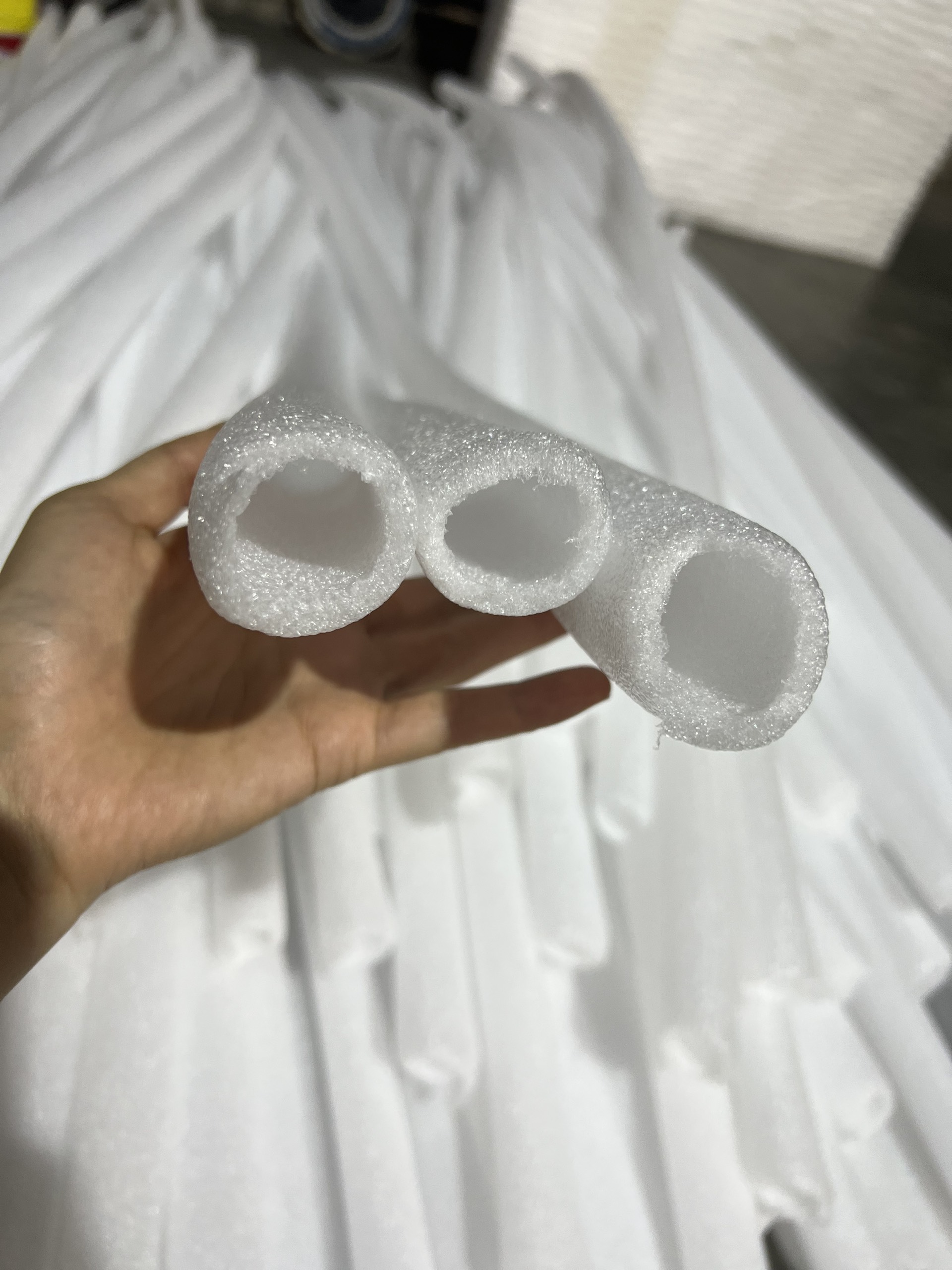 Về chiều dài xốp ống không có kích cỡ cố định. Có ống dài 2m, có ống dài 20cm, 50cm,… Điều này phụ thuộc vào mục đích sử dụng.