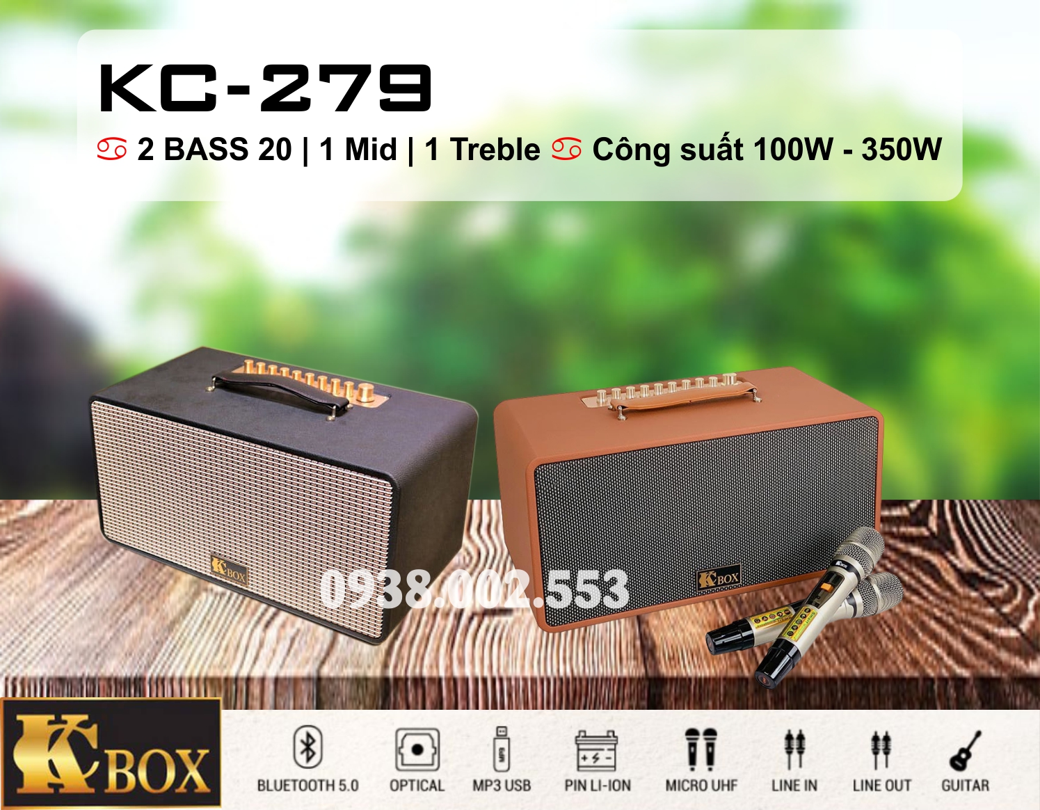 Loa Karaoke KC-279 được thiết kế với cấu hình 3 đường tiếng, bao gồm: