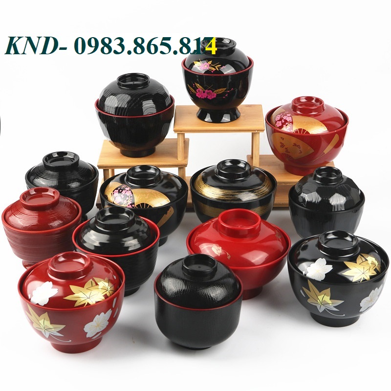 Bát soup miso, bát soup có nắp, bát soup nhựa đỏ đen, bát soup nhật, bát soup nhà hàng,