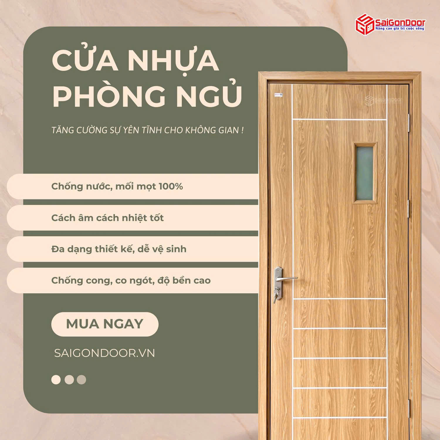Đối với những gia đình muốn tối ưu chi phí nhưng vẫn đảm bảo tính thẩm mỹ, cửa nhựa Đài Loan là phương án không thể bỏ qua. Với kết cấu ghép thanh linh hoạt, dòng cửa này cho phép tạo ra nhiều mẫu mã, ô kính hoặc lá sách thông gió, giúp phòng ngủ luôn thoáng đãng mà vẫn đảm bảo được sự riêng tư cần thiết.