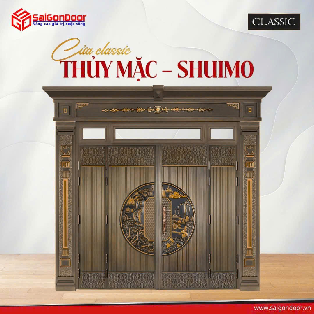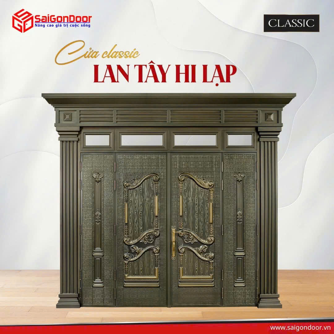 Vẻ đẹp của dòng cửa Classic nằm ở sự trau chuốt của từng đường nét. Các mẫu cửa được thiết kế với độ dày dặn, các ô Pano (ô kính/ô đắp nổi) được sắp xếp theo tỷ lệ vàng, tạo nên sự cân đối và uy quyền.