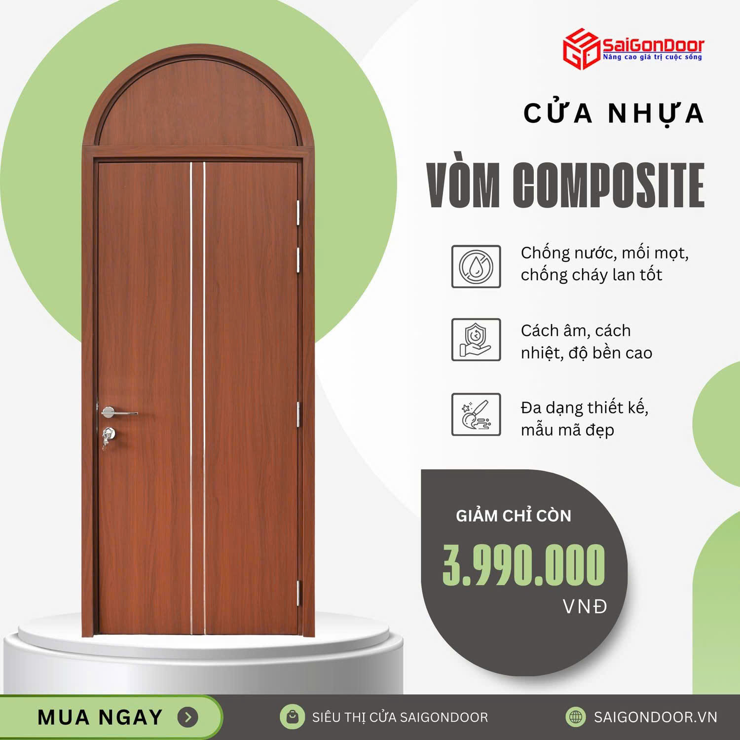 Không phải ngẫu nhiên mà dòng cửa này lại nhận được sự quan tâm đặc biệt từ các kiến trúc sư và chủ đầu tư. Dưới đây là những ưu điểm cửa vòm composite vượt trội khiến nó trở thành giải pháp thay thế hoàn hảo cho cửa gỗ truyền thống.