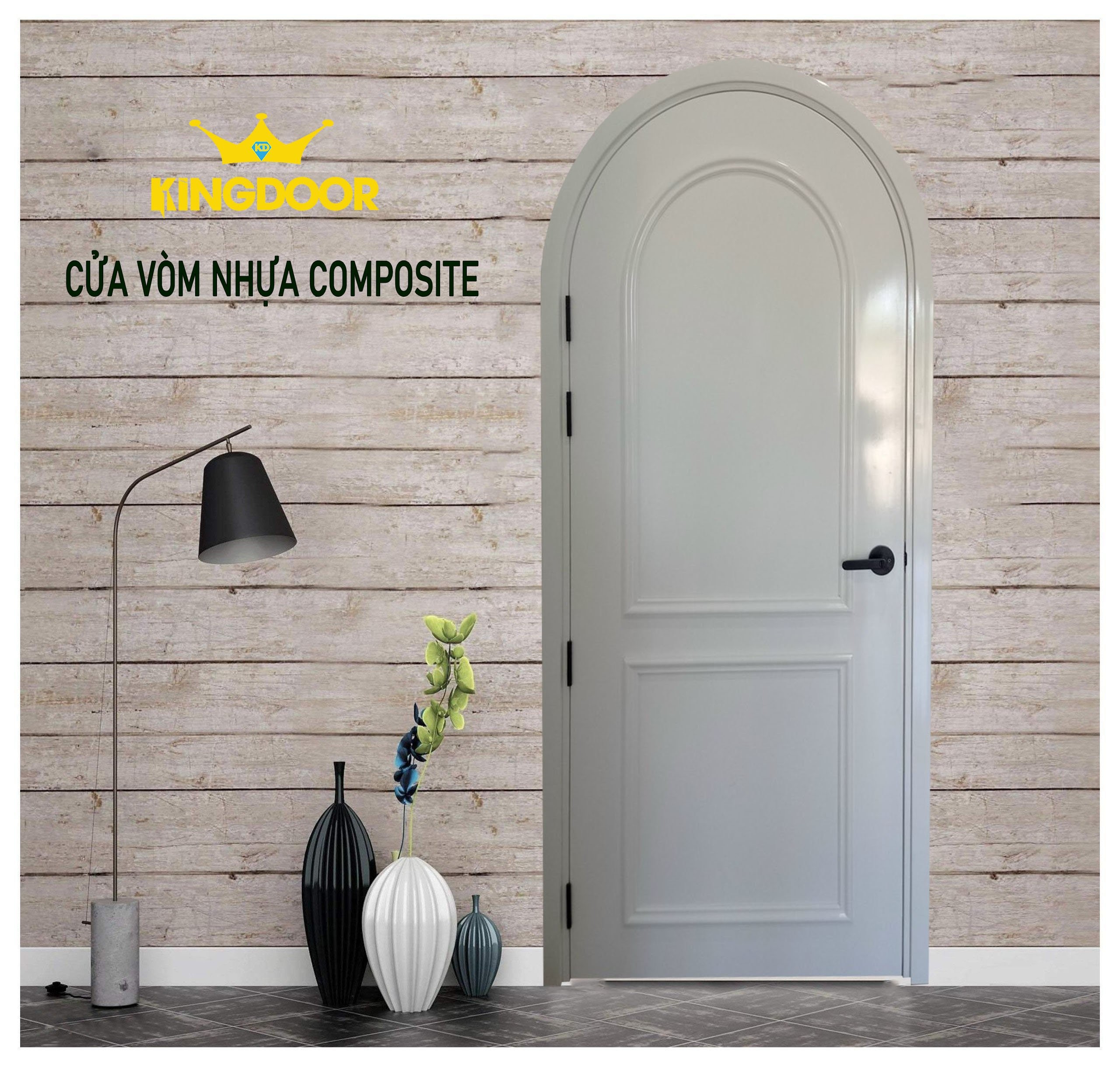 Cửa vòm được làm từ bột gỗ, keo chuyên dụng và một số phụ gia tạo thành. Các nguyên liệu được áp với ap suất cao tạo nên sản phẩm có đặc tính vượt trội. Với thiết kế hai đầu dưới là 2 góc vuông, còn phần trên có cấu trúc hình cung mềm mại tạo điểm nhấn cho ngôi nhà đồng thời thể hiện cá tính mới lạ của gia chủ.
