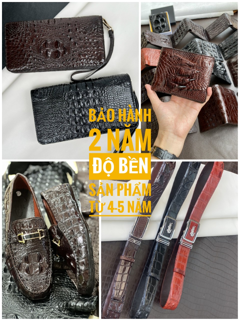 - Cam kết tất cả sản phẩm được làm từ da thật 100% - Bảo hành 24 tháng ( Da , đường chỉ may , khoá kéo,…)