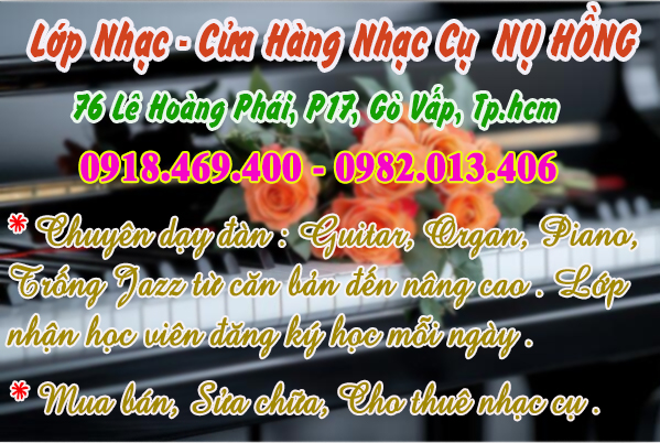 ♥ Tham gia các lớp học nhạc cụ : guitar, organ, piano, trống jazz,... tại Lớp Nhạc Nụ Hồng . Lớp nhận học viên đăng ký học mỗi ngày ..