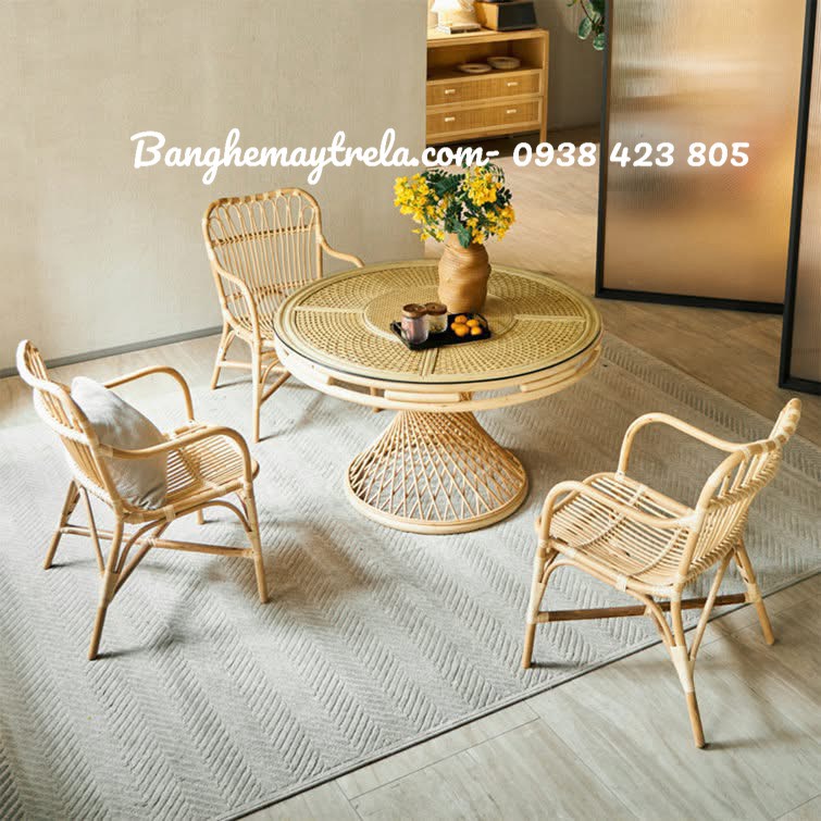 Ghế bàn ăn mây tự nhiên là lựa chọn hoàn hảo cho không gian ăn uống, kết hợp giữa sự thoải mái và vẻ đẹp mộc mạc nhưng sang trọng.