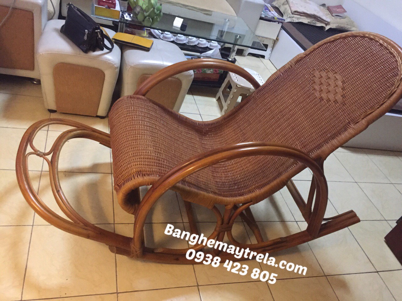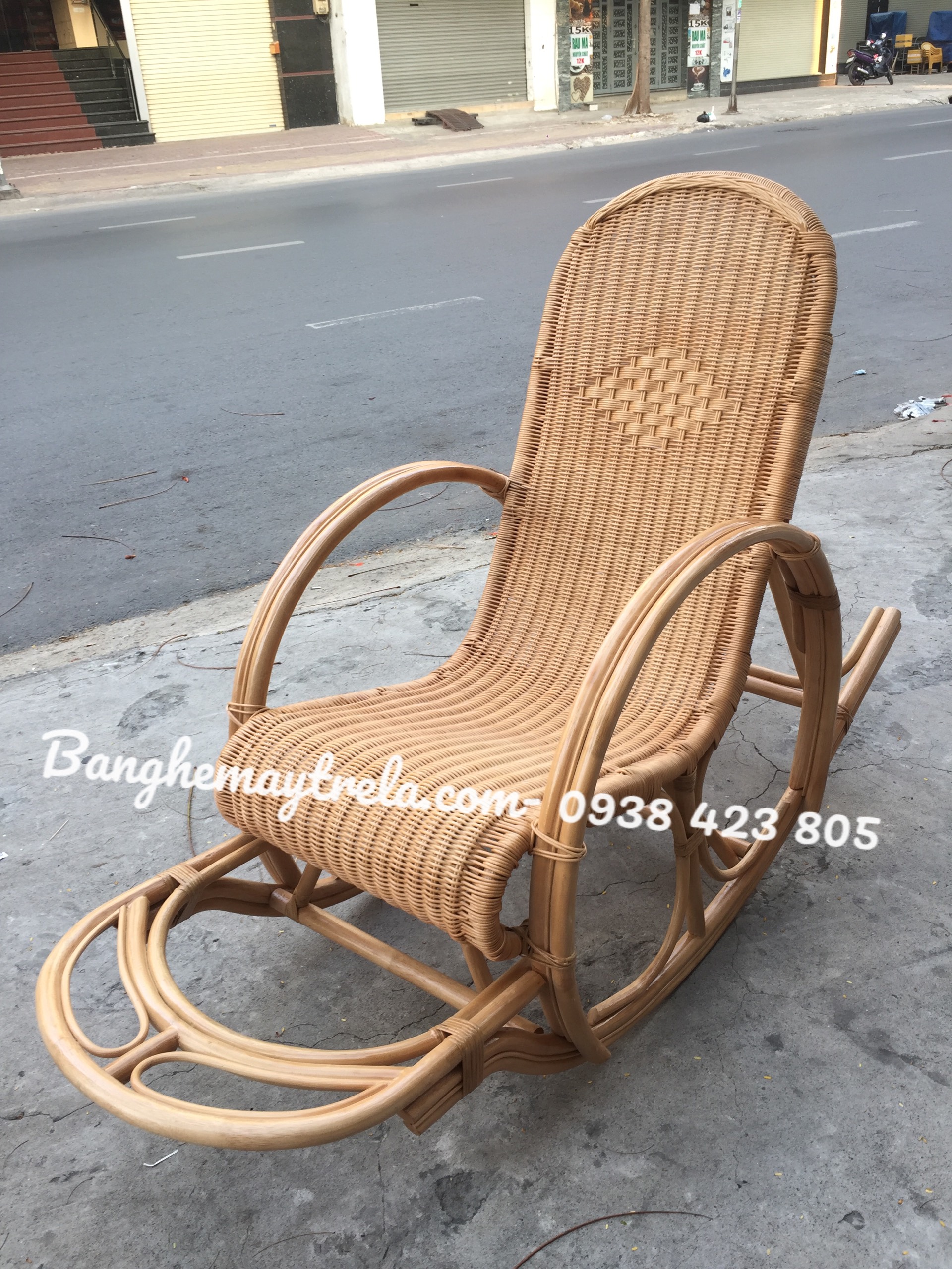 Ghế bập bênh làm từ mây tự nhiên, được đan kín tỉ mỉ, chắc chắn và bền bỉ.
