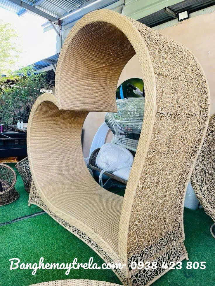 Ghế chụp hình trái tim nhựa giả mây mang dáng vẻ độ đáo lạ mắt mang lại cho không gian ngoại thất của bạn sự ấn tượng gần gũi với thiên nhiên