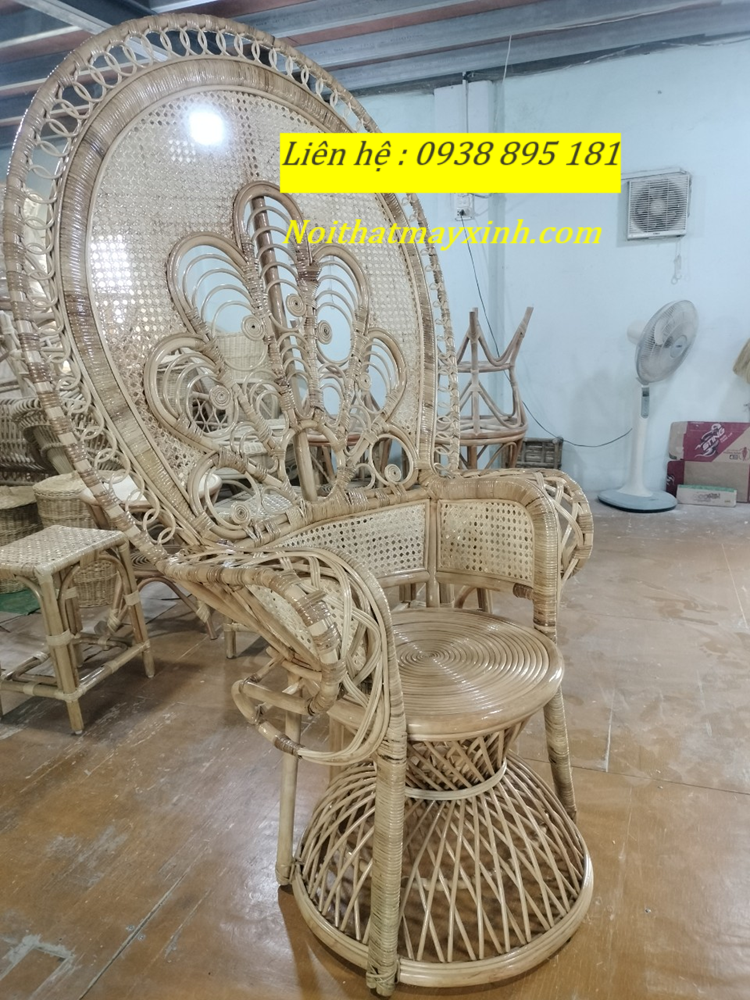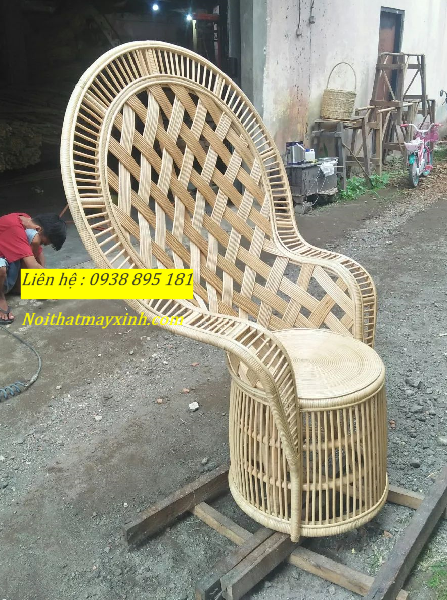 Xưởng sản xuất ghế đuôi công mây tự nhiên cao cấp là một loại ghế được làm từ các sợi mây tự nhiên cao cấp, thường là mây tre hoặc mây nứa. Ghế này thường có hình dáng giống như một chiếc ghế đơn thông thường nhưng điểm đặc biệt của nó chính là các sợi mây được dệt thành một dạng hình dáng đuôi công tạo nên một kiểu dáng độc đáo và lạ mắt.