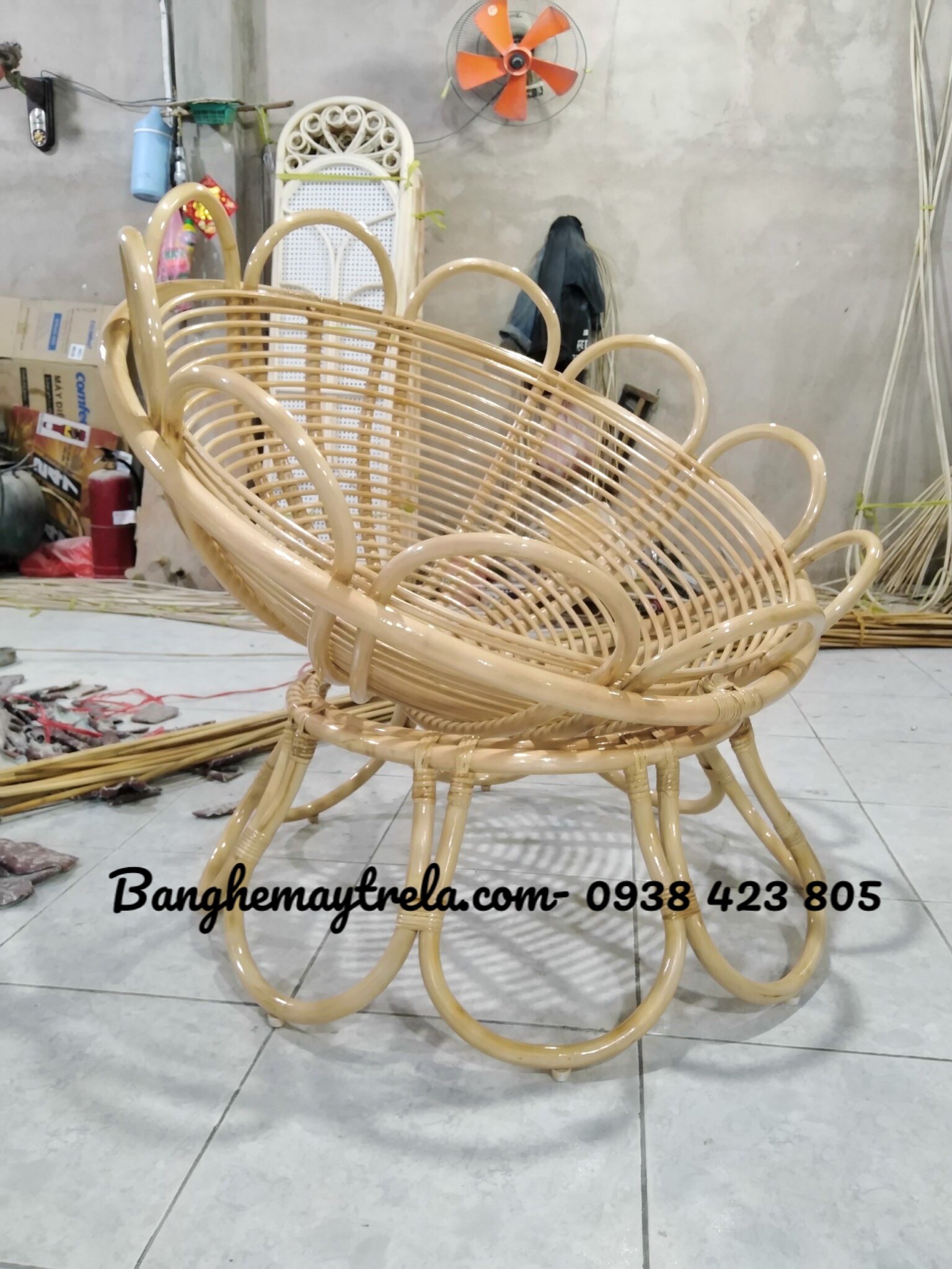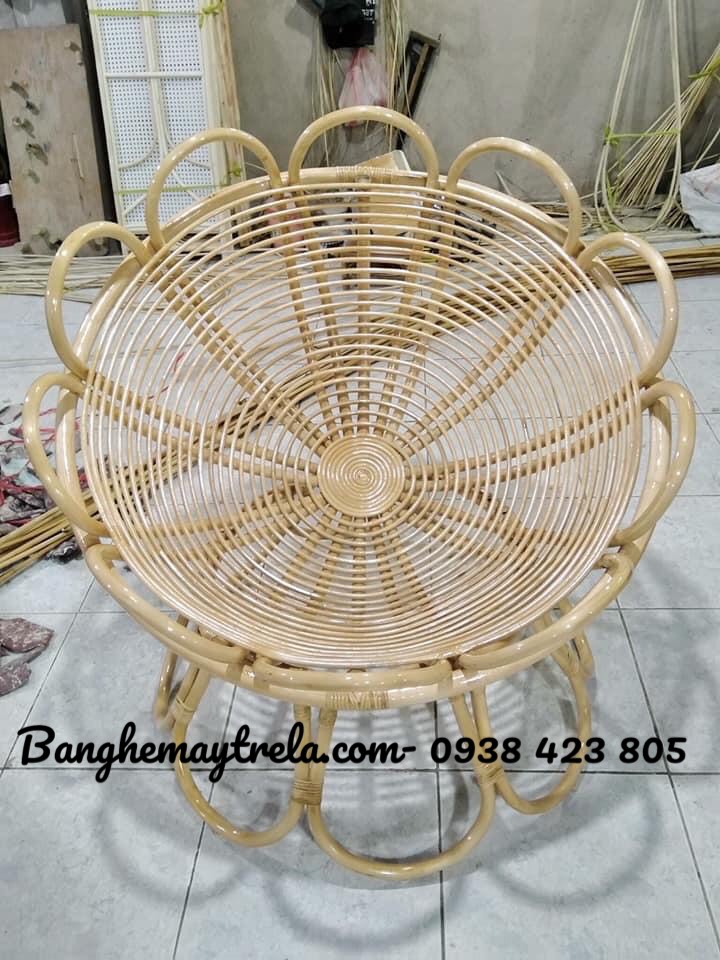 Chất liệu: ghế bông hoa/ ghế mây tròn được làm thủ công từ 100% mây tự nhiên với những vòng mây được quấn sát nhau tạo nên sự chắc chắn cho người ngồi.