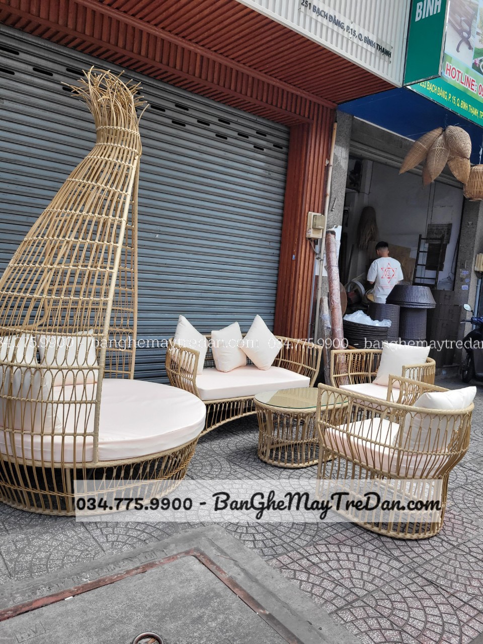 Với 2 ghế đơn, 1 băng dài, 1 bàn và 1 ghế tổ chim decor size lớn, bộ ghế này sẽ là điểm nhấn hoàn hảo trong không gian ngoại thất của bạn.