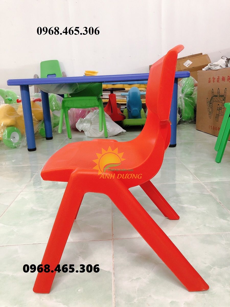 Ghế mầm non có thiết kế chống gù với lưng ghế uốn cong theo trục xương của bé. Mặt ghế lõm để trẻ khỏi bị ngã về phía trước.