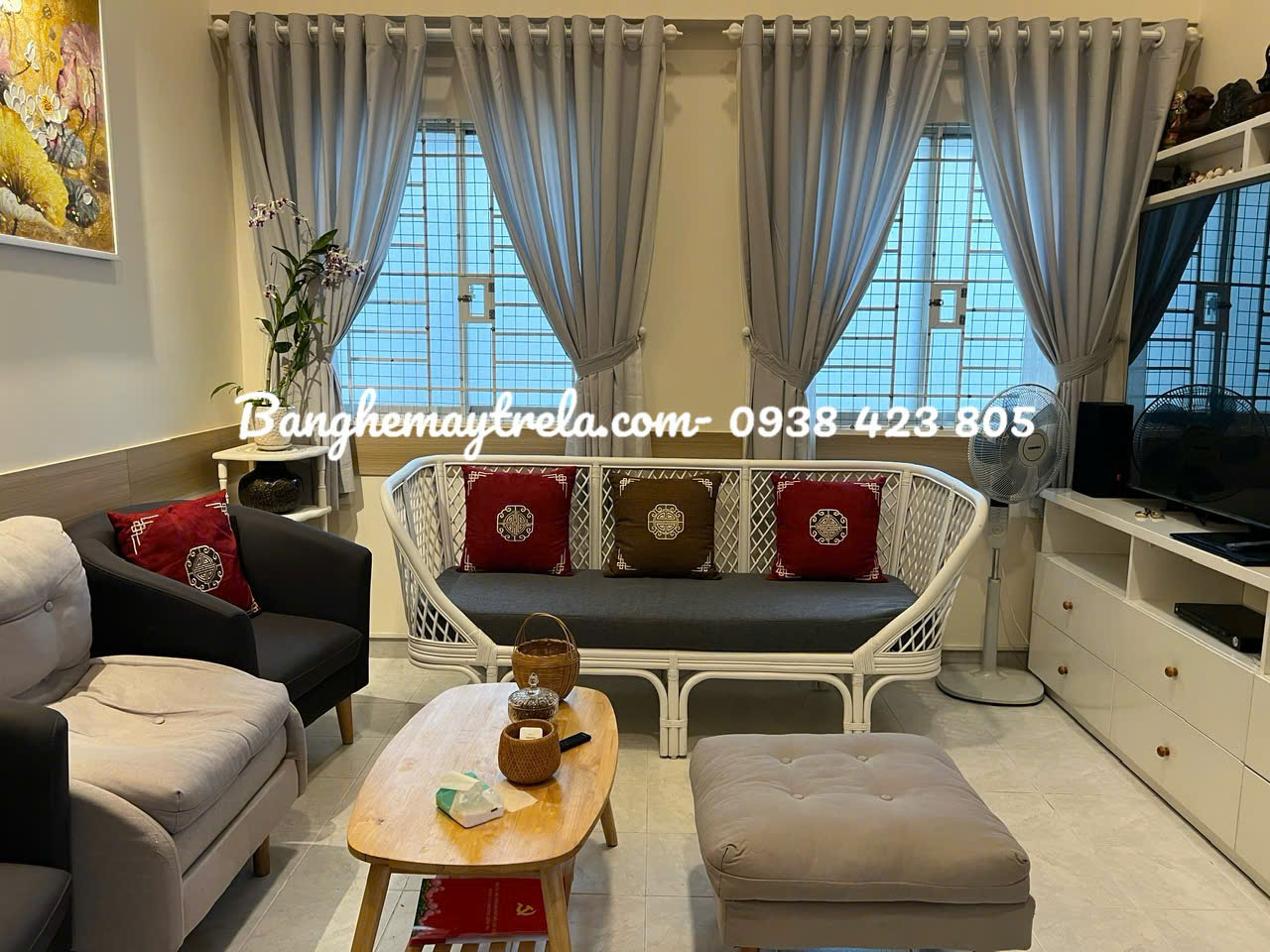 Băng ghế mây lưng caro hiện đại cho phòng khách