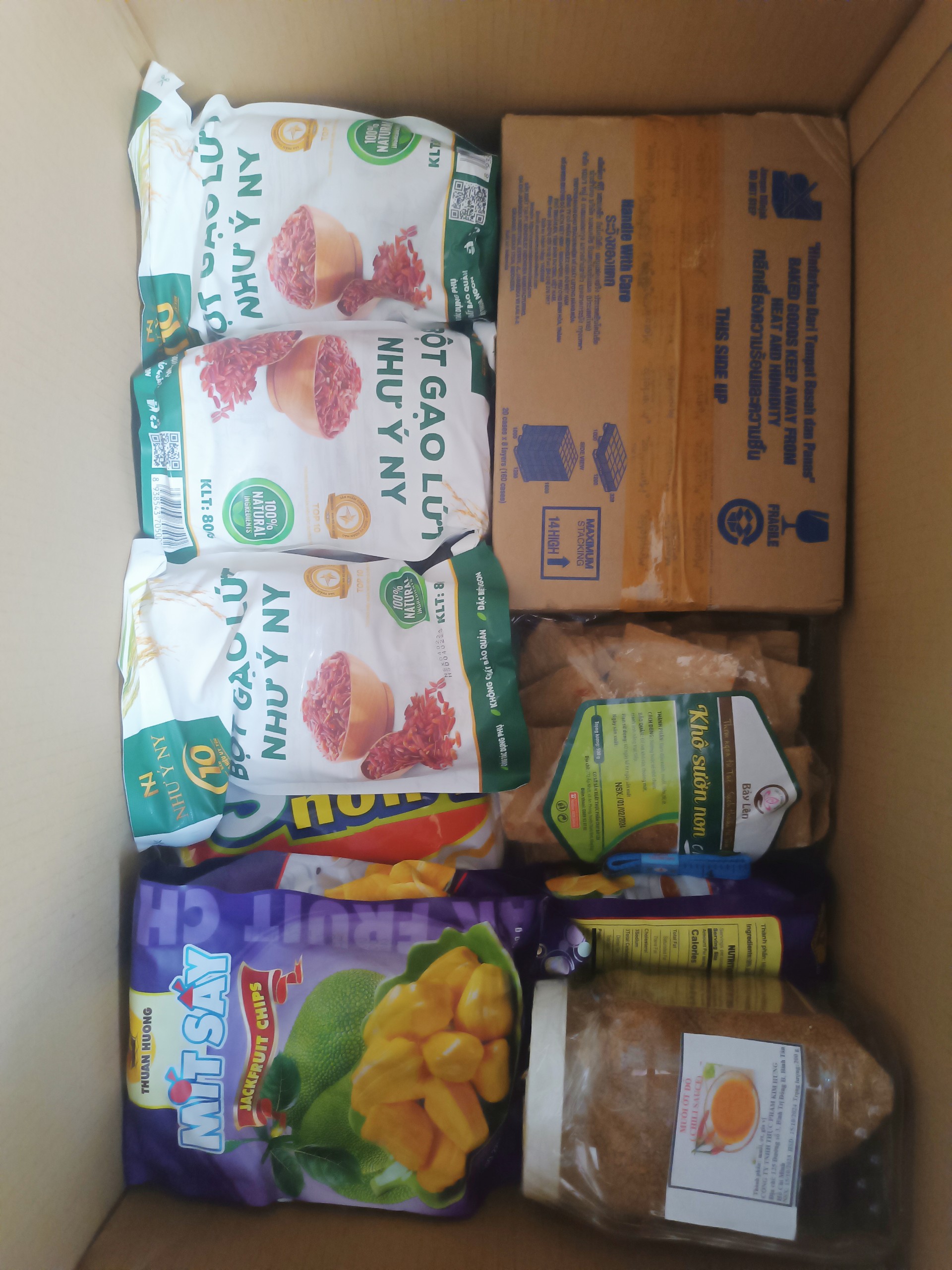 - Hàng thực phẩm, hạt điều, ngũ cốc, trái cây sấy khô, bánh kẹo, bánh tráng...