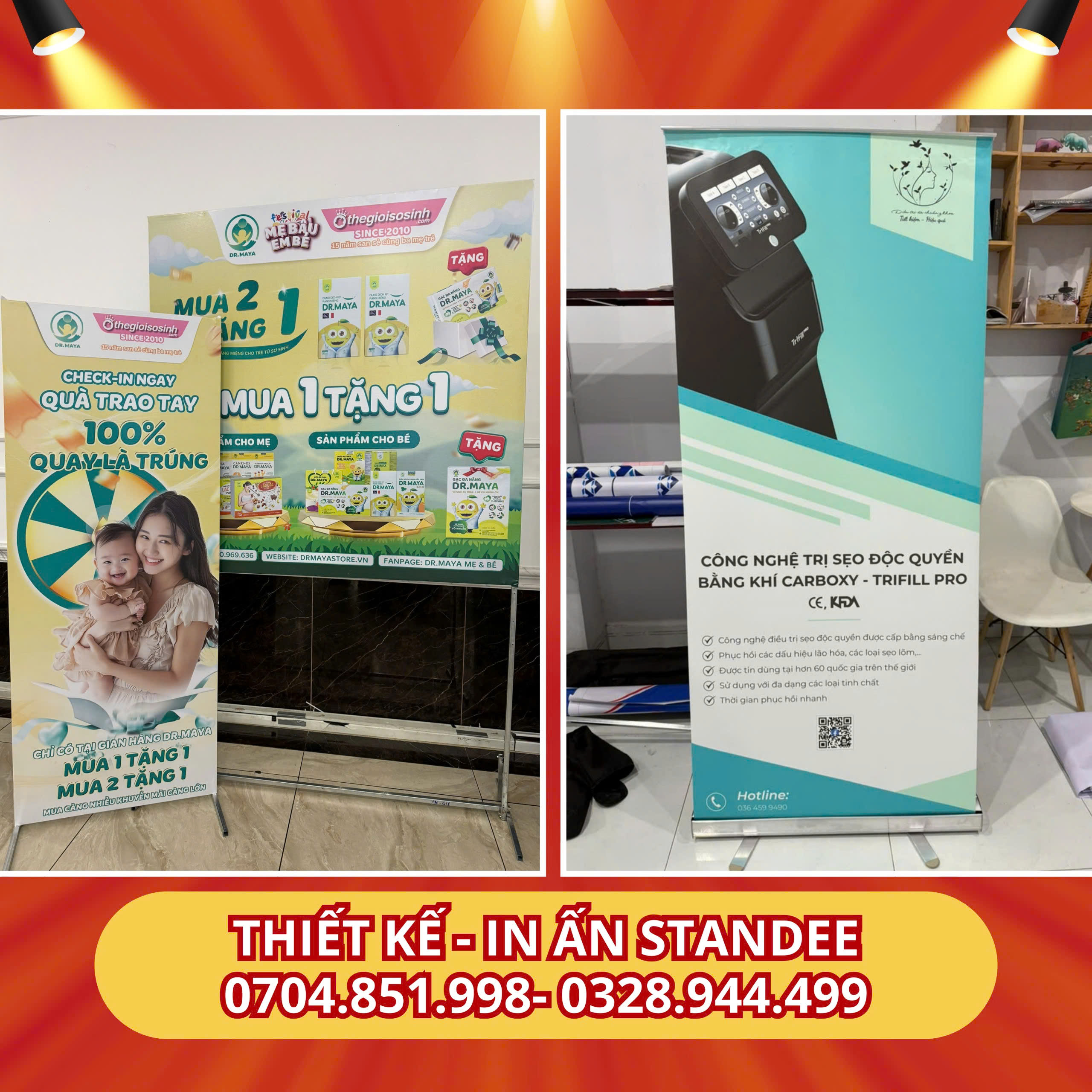 ⚠ In ấn cực nét cùng đa dạng các loại khung: Standee chân X, Standee cuộn nhôm, Standee chân sắt, Hộp đèn