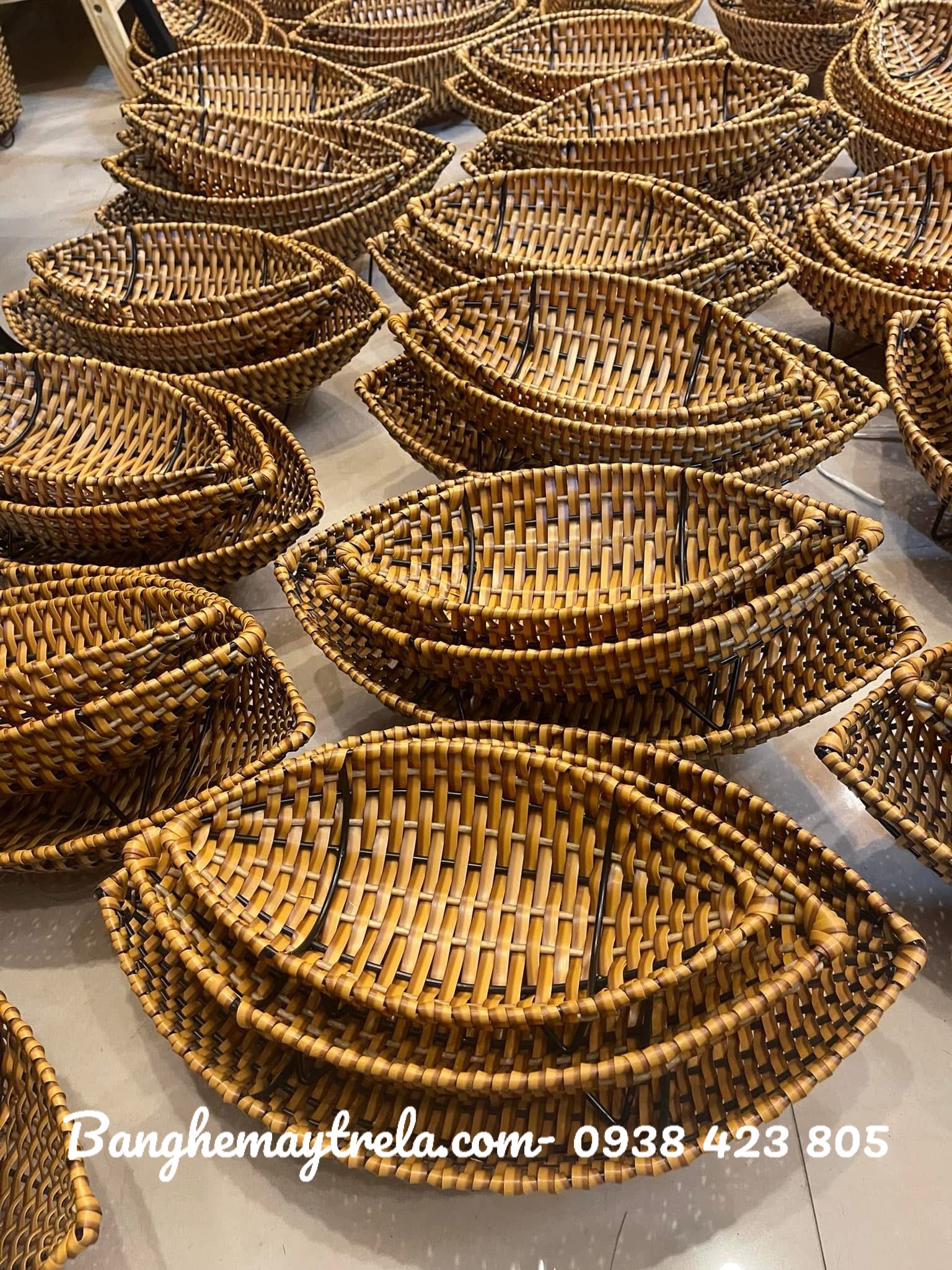 Chất liệu: Nhựa giả mây cao cấp, khung thép sơn tĩnh điện hoặc nhựa cứng chắc chắn. Có hình chữ nhật hoặc vuông, thành khay cao vừa phải, đan khít và đều tay. Nhiều tông màu tự nhiên như nâu, vàng nhạt ...