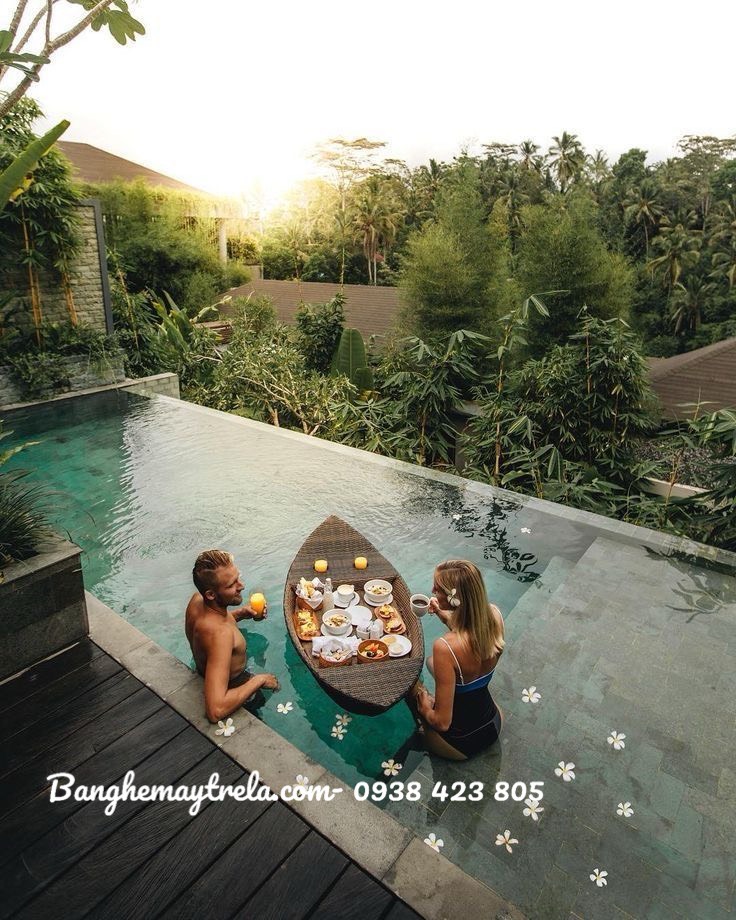 Thư giãn và tận hưởng bữa ăn tuyệt vời cùng chiếc khay nổi đồ ăn, làm cho trải nghiệm trở nên đặc biệt hơn và không gian bể bơi thêm phần sang trọng và tiện nghi.