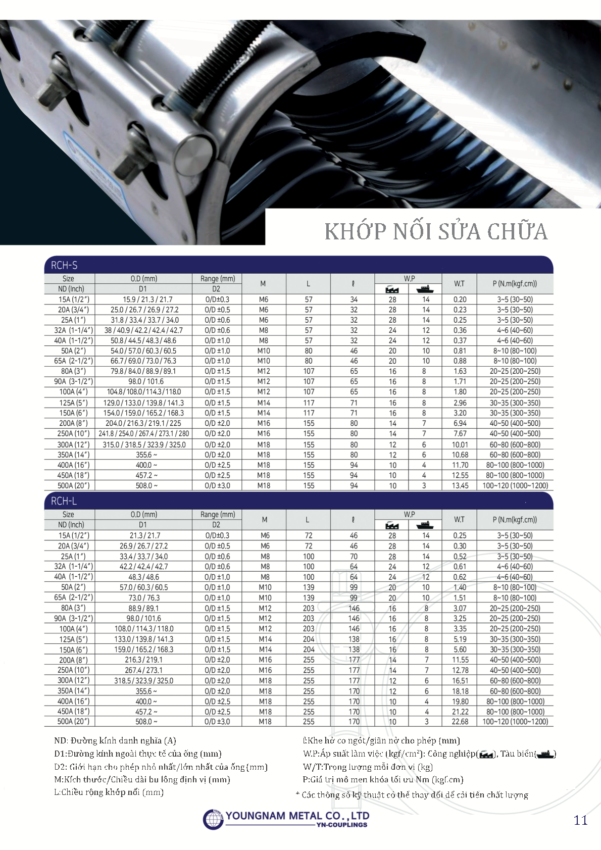 Khớp nối sửa chữa: RCH-S chuyên dụng để nối các đường ống và sửa chữa đường ống. Đây là khớp nối có thể thay thế cho các cách nối ống thông thường khác như: hàn xì, hàn điện, keo dính, ghép ren.Khớp nối sửa chữa cấu tạo đặc biệt có thể mở dễ dàng để lắp đặt. Với khớp nối sửa chữa RCH-S mọi thao tác thi công đều nhanh chóng, tiết kiệm thời gian và nhân công. Khớp nối ống sửa chữa được làm bằng chất liệu 100% thép không gỉ (INOX 304/316L) có thể chịu nhiệt độ cao thích hợp với mọi loại môi trường và mọi loại ống ở Việt Nam.