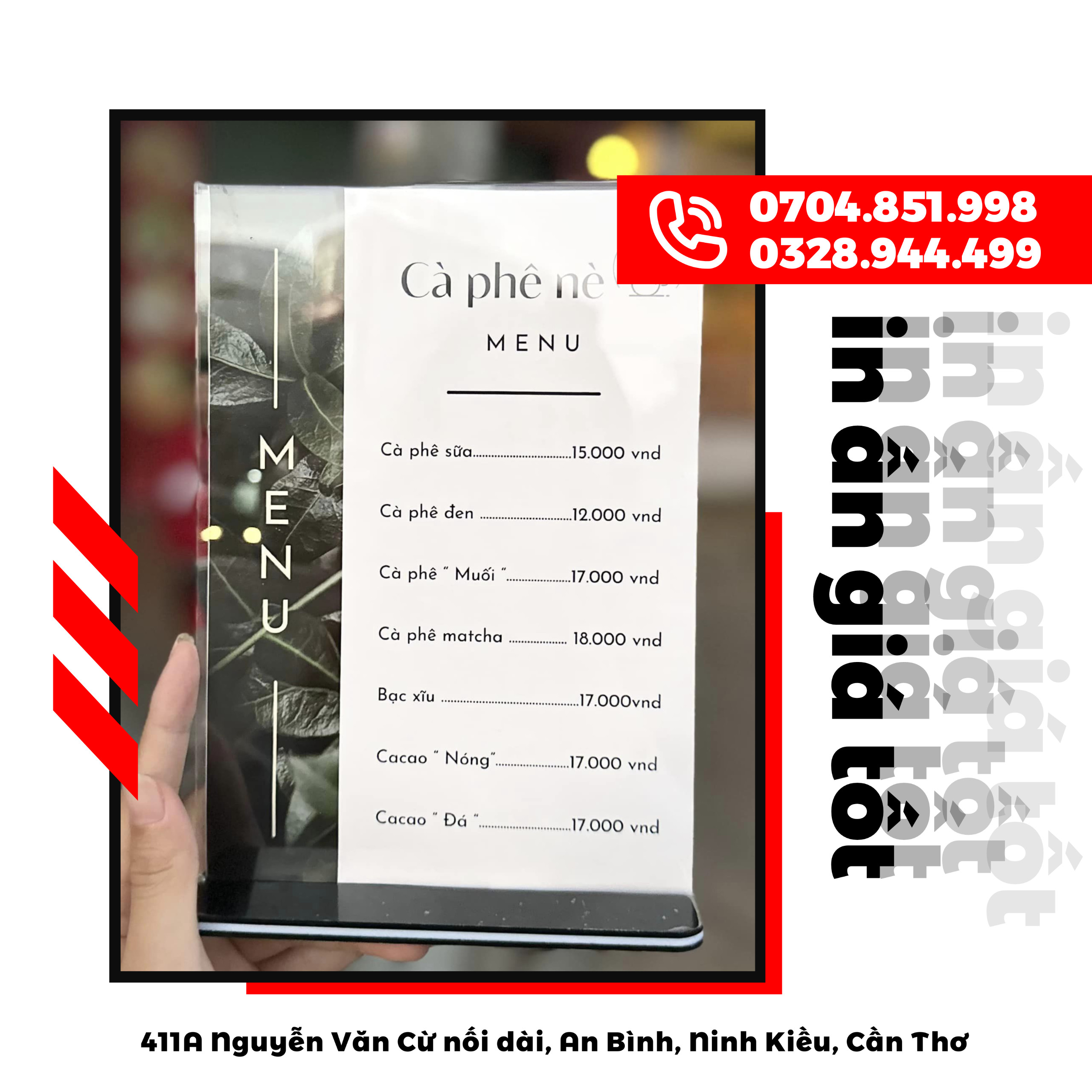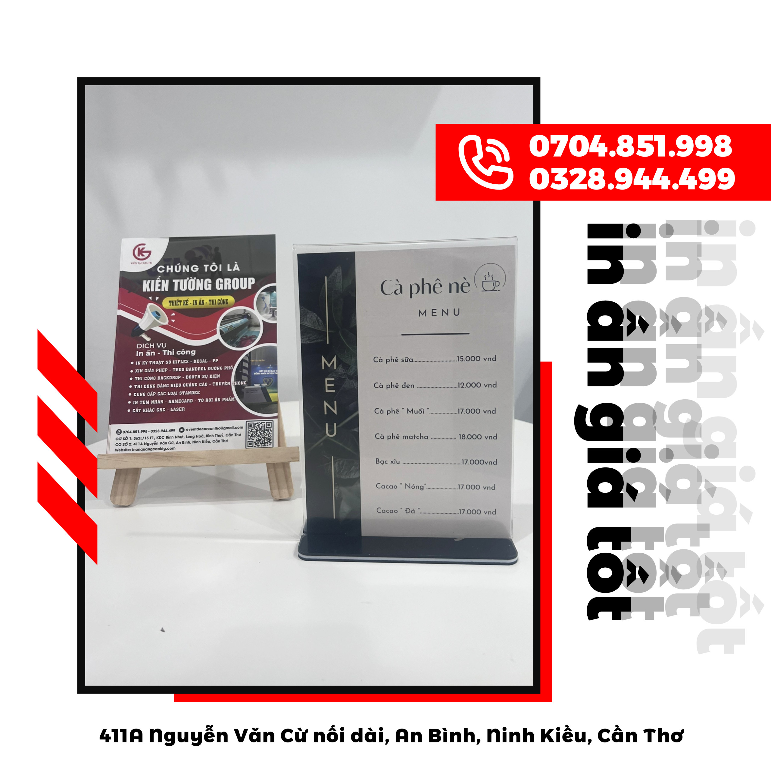 💌 Đa dạng các dịch vụ: in ấn decal dán xe, thiết kế menu- name card- voucher, thi công lắp đặt standee- xe trà sữa- bảng hiệu hộp đèn,...