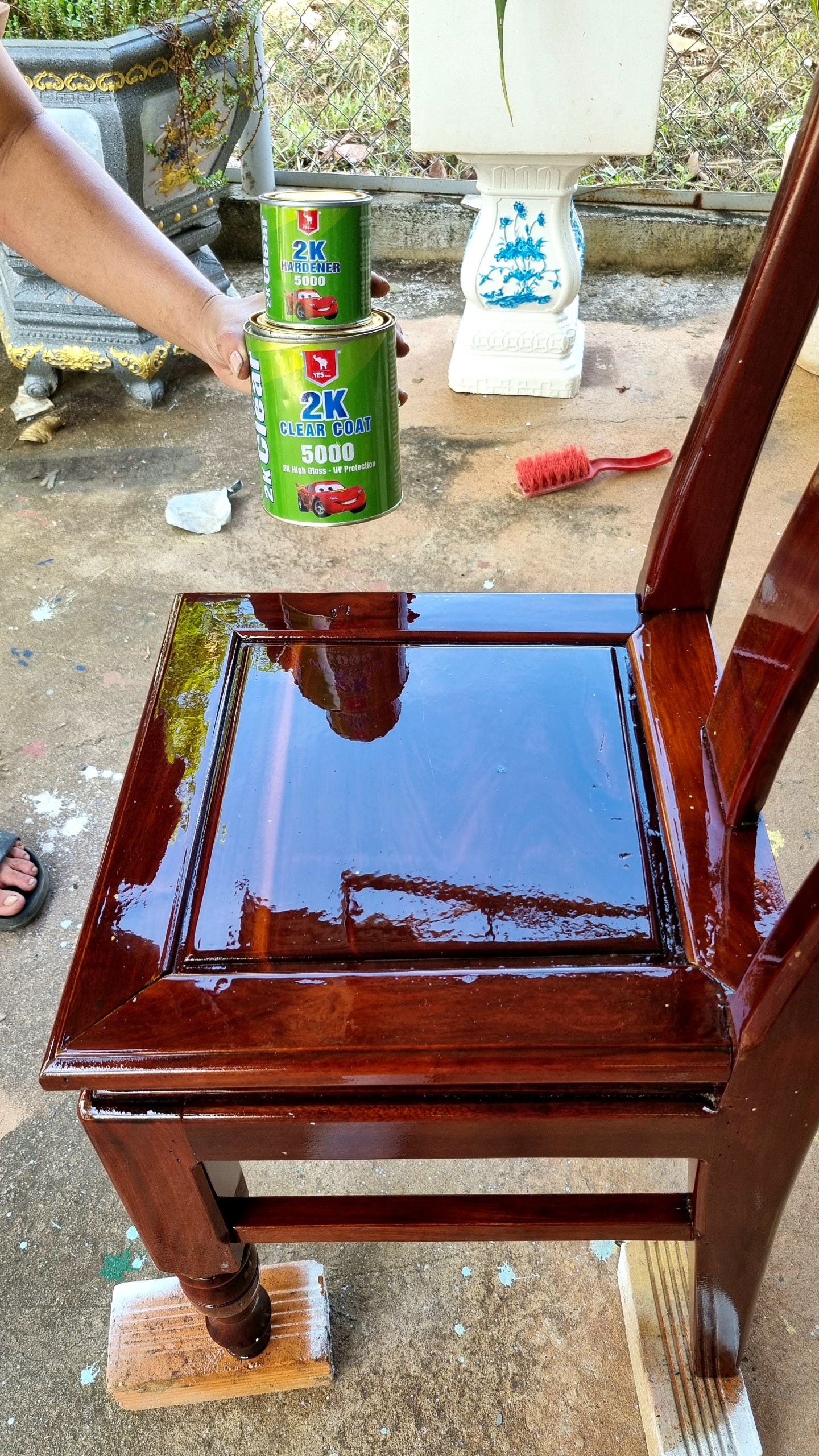 – Pha chất đóng rắn với sơn theo tỷ lệ 4:1:4