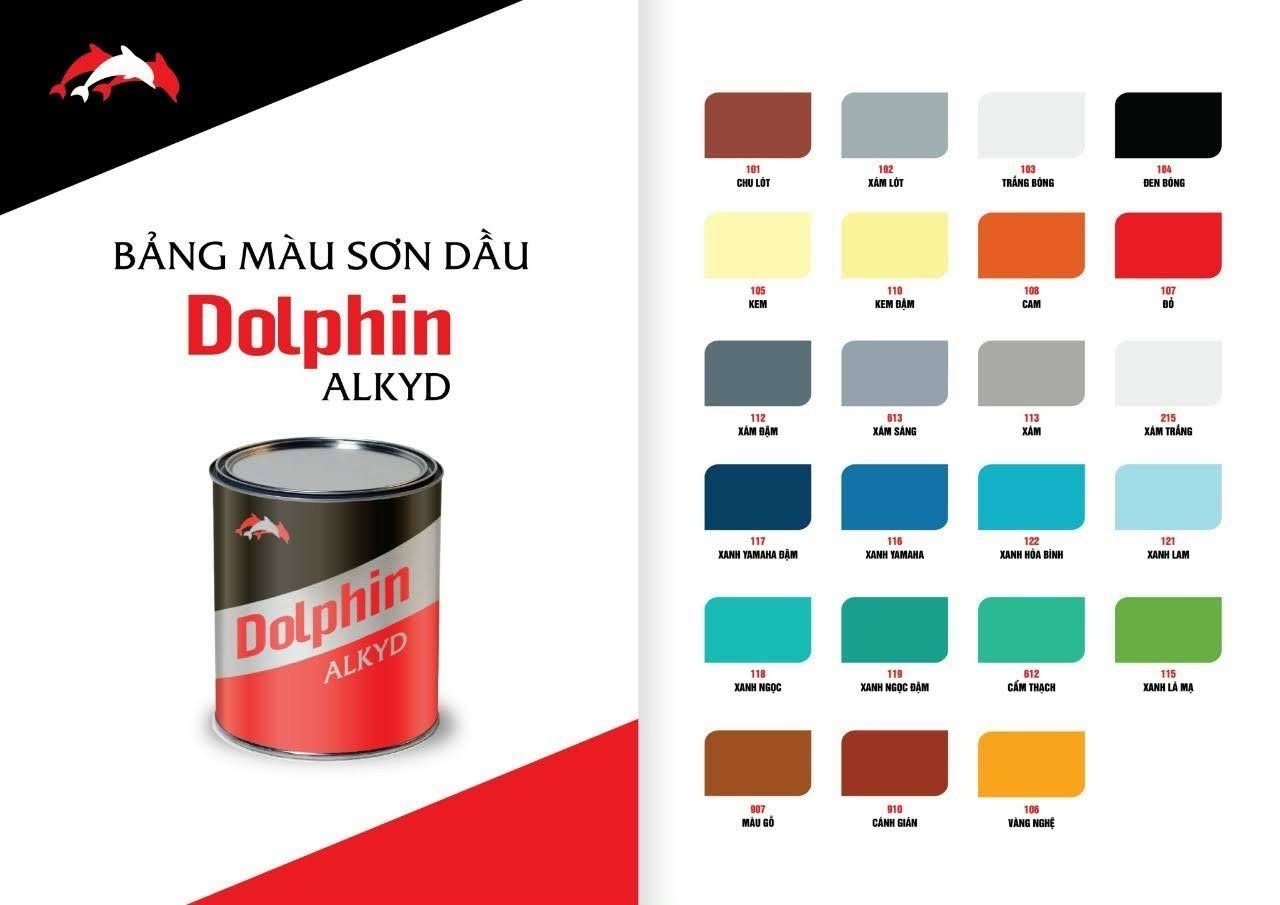 Sơn dầu Dolphin Alkyd bóng: Là loại sơn phủ bóng cao cấp gốc Alkyd dùng để phủ bóng các bề mặt kim loại, gỗ, … bảo vệ bề mặt khỏi rong rêu, nấm mốc, rỉ sét. Dolphin Alkyd có khả năng duy trì độ bóng, độ bền màng sơn cũng như tuổi thọ và độ phủ bóng cao. Thích hợp cho đồ gỗ, kim loại, trong nhà lẫn ngoài trời.