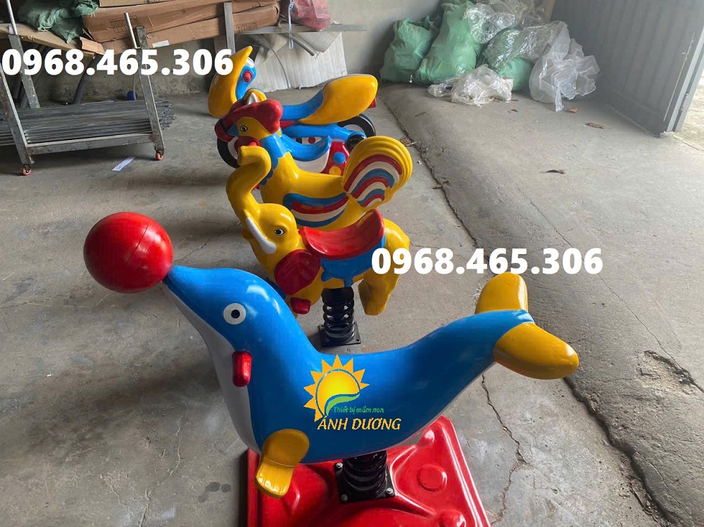 Phần có hình dạng thú: được làm từ nhựa composite an toàn tuyệt đối với các bé. Bề mặt thú nhún được phủ một lớp sơn bóng mịn. Mỗi mô hình đều được thiết kế có bệ để chân cho bé, đảm bảo an toàn cho bé khi vui chơi.