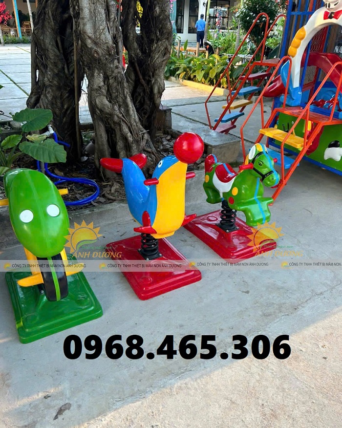 Phần đế nhún: Là phần được bắt nở bằng ốc vít với đất để tạo ra điểm cố định vững vàng. Trẻ có thể an tâm chơi mà không lo bị ngã.