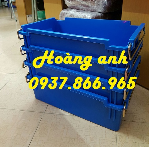 Thùng được làm từ nhựa HDPE hoặc PP nguyên sinh, có độ bền cao, khả năng chịu lực tốt, chống nước, bụi và hóa chất. Thùng có thiết kế dạng hình chữ nhật với các đường gân tăng cứng, đáy phẳng, quai kim loại chắc chắn, giúp xếp chồng vững chắc và dễ dàng bưng bê. Sản phẩm có nhiều màu sắc, có thể tùy chỉnh in logo