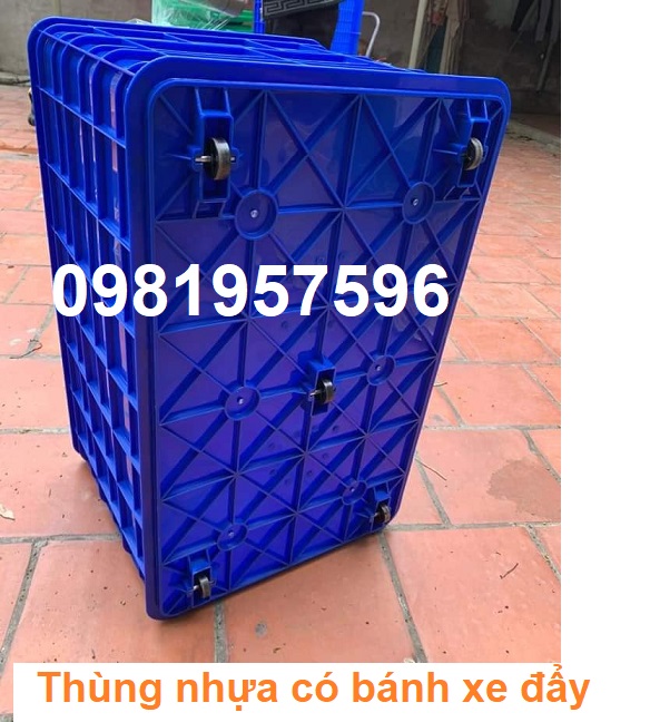 Thùng nhựa có bánh xe đẩy kích thước 78x50x43 cm được sản suất từ nhựa nguyên sinh, nan thùng dày nhiều tầng, tăng độ bền chịu lực của thùng