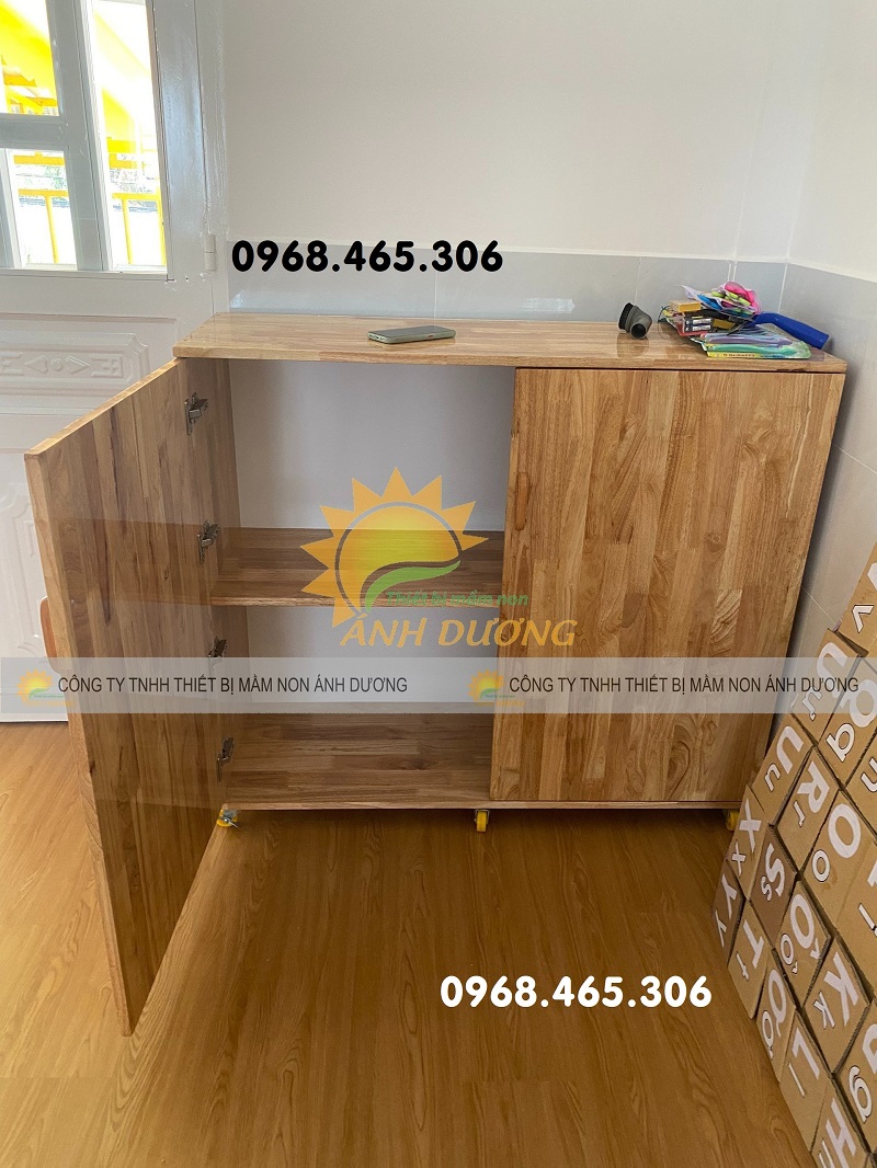 Giá kệ để đồ gỗ mầm non 3 tầng được sản xuất từ chất liệu gỗ tự nhiên gỗ cao su đảm bảo chất lượng cao, an toàn khi tiếp xúc, sử dụng.