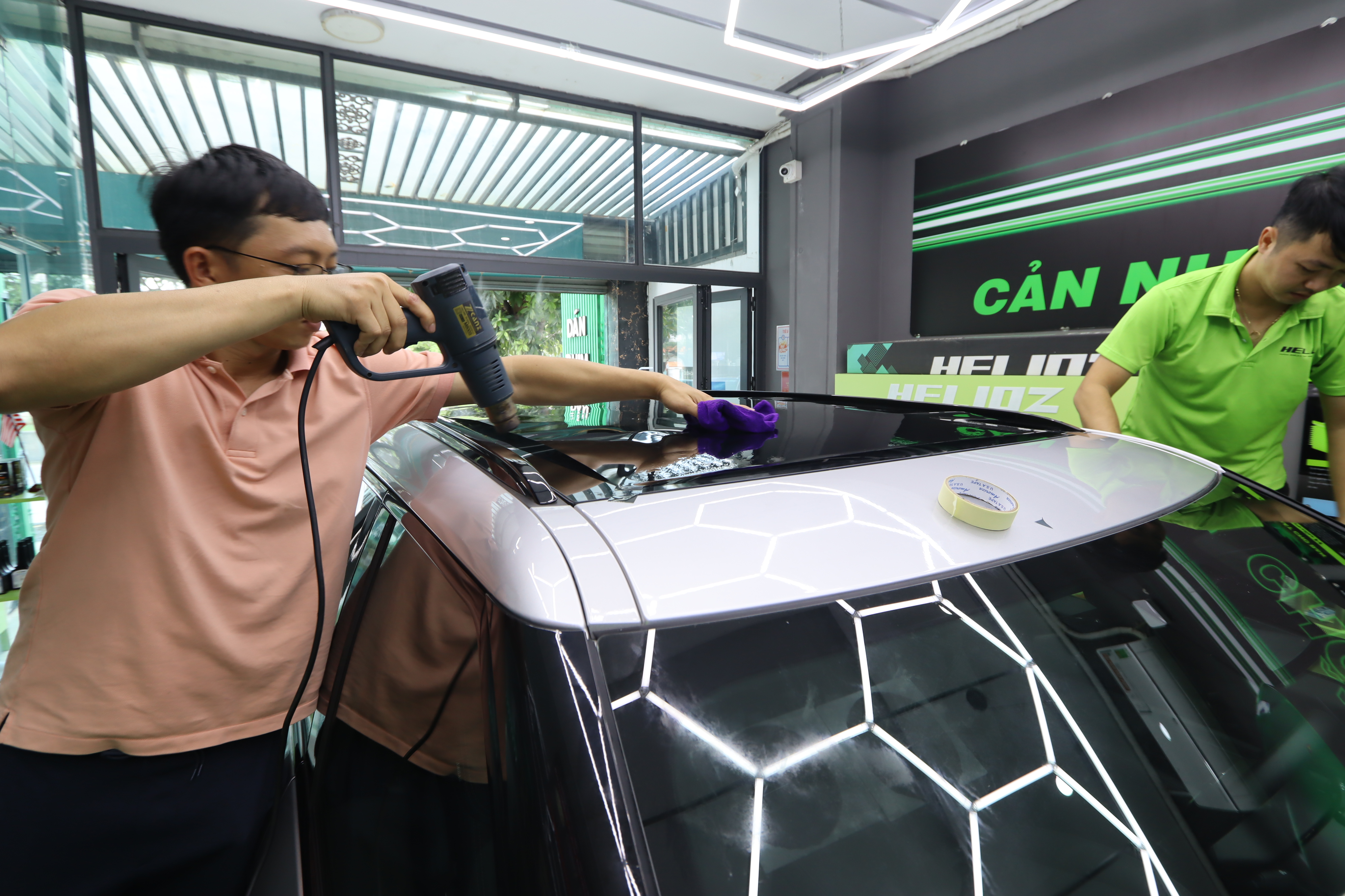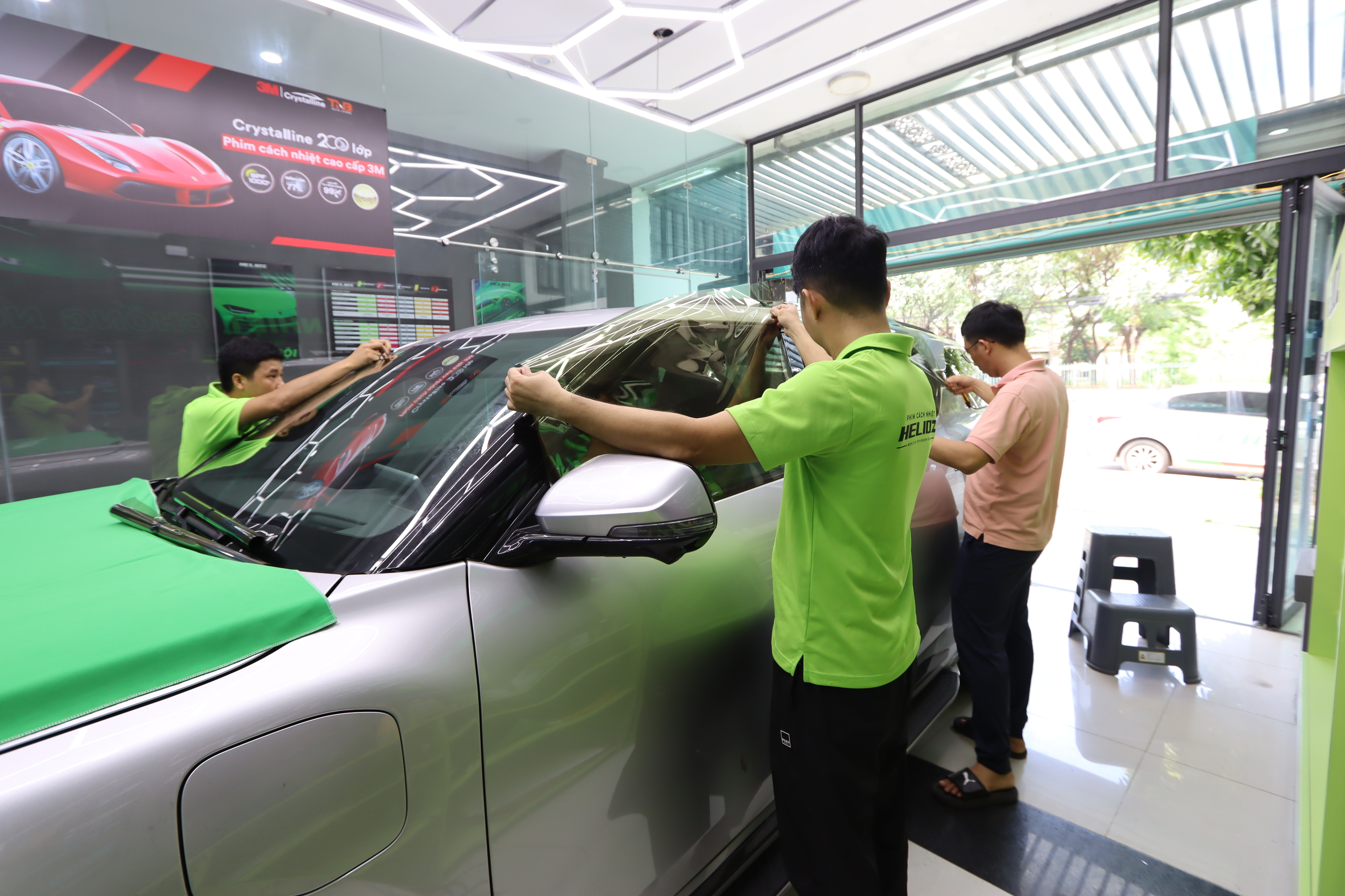 Với đội ngũ nhân viên kỹ thuật có tay nghề hơn 5 năm kinh nghiệm, xử lý tốt mọi quy trình dán phim, đảm bảo không gây ra bất kỳ sai sót nào trong quá trình thực hiện. Bên cạnh đó, chúng tôi có hệ thống phòng dán phim cách nhiệt chuyên nghiệp. Cam kết 100% sản phẩm là hàng chính hãng, với thời gian bảo hành lên đến 10 năm.