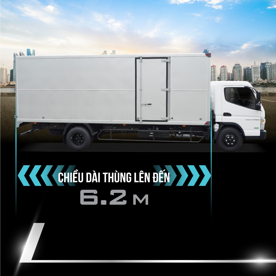 Sở hữu chiều dài cơ sở 4.750mm và chiều dài thùng lên đến 6.2m, Mitsubishi Fuso Canter F8.5L là giải pháp hoàn hảo vận chuyển hàng hóa có kích thước chiều dài lớn, hàng tiêu dùng cồng kềnh… ở các khu vực ngoại thành.