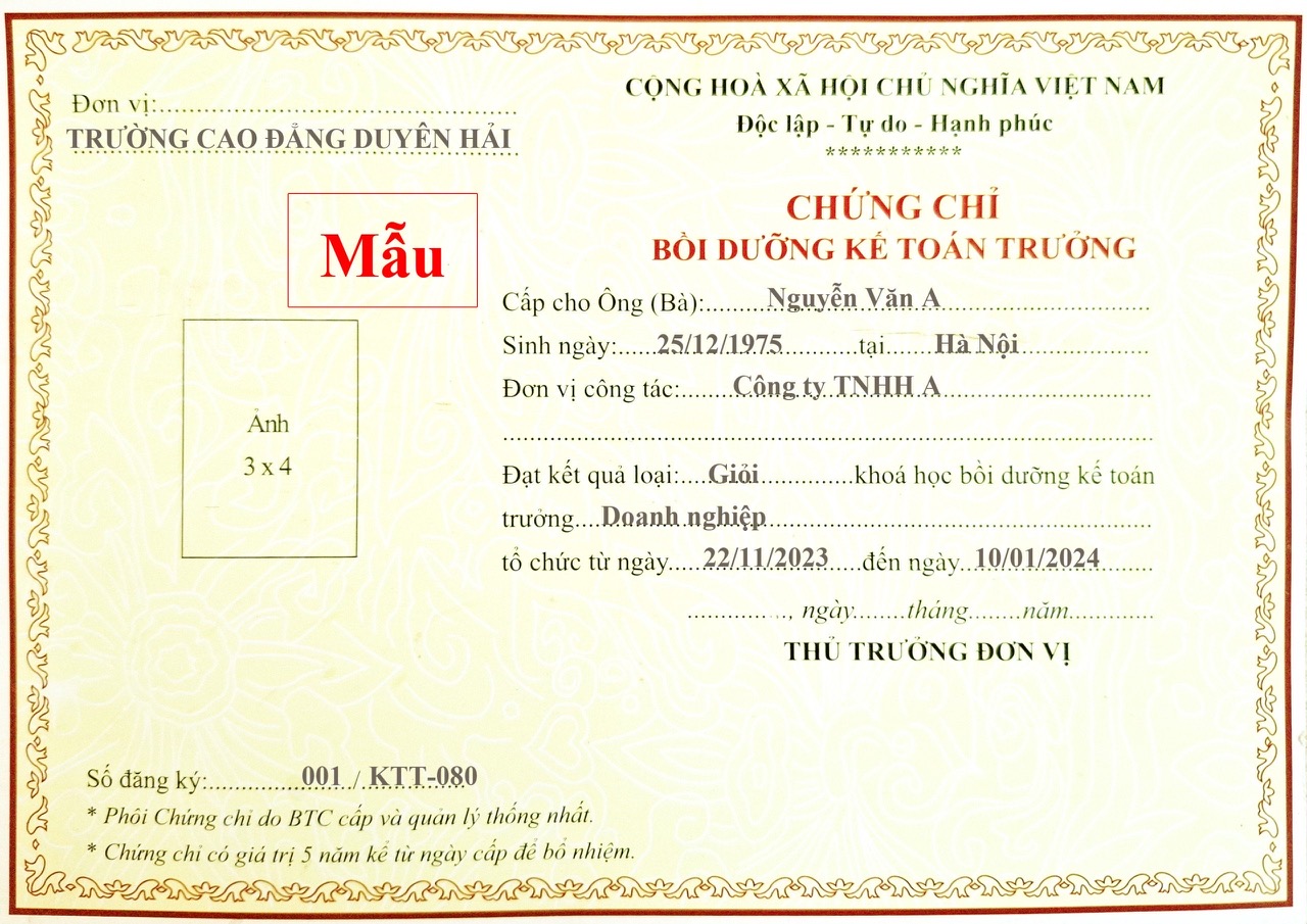 Trường Cao Đẳng Duyên Hải thông báo tuyển sinh khóa học kế toán trưởng hành chính sự nghiệp và kế toán trưởng doanh nghiệp như sau: